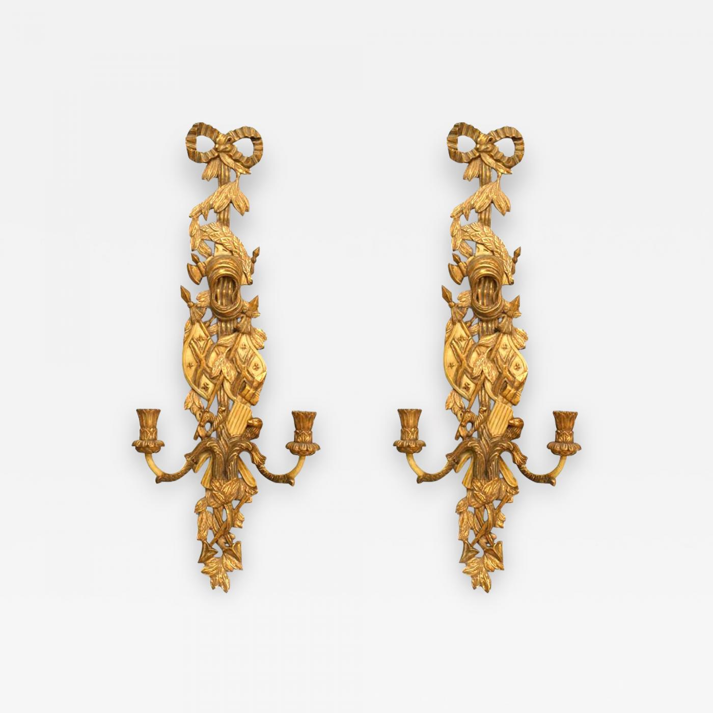 Pair of French Louis XV Style Gilt Carved Wall Sconces