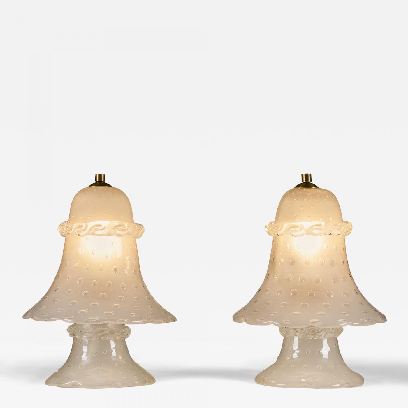 Pair of Italian Murano bullicante vintage table lamps with brass filial detail