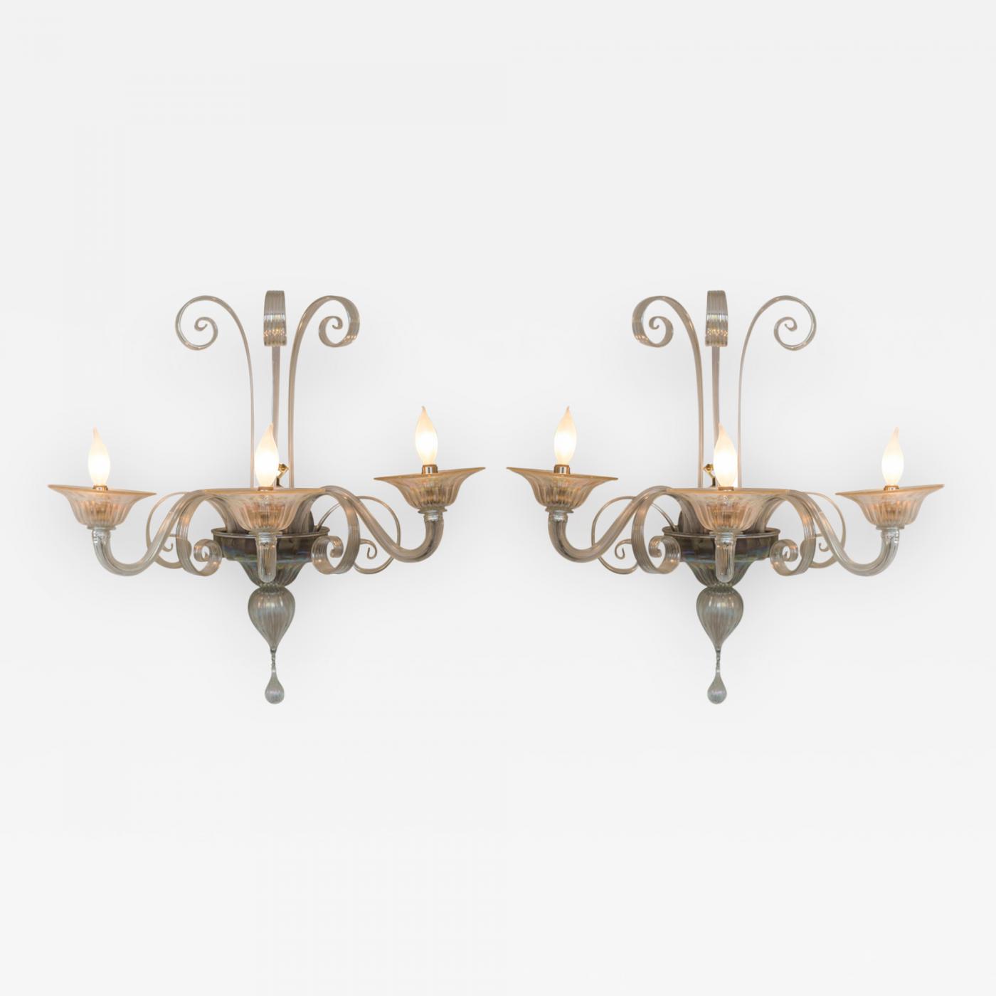 Pair of Classical Iridescent Blown Three-Arm Wall Lights