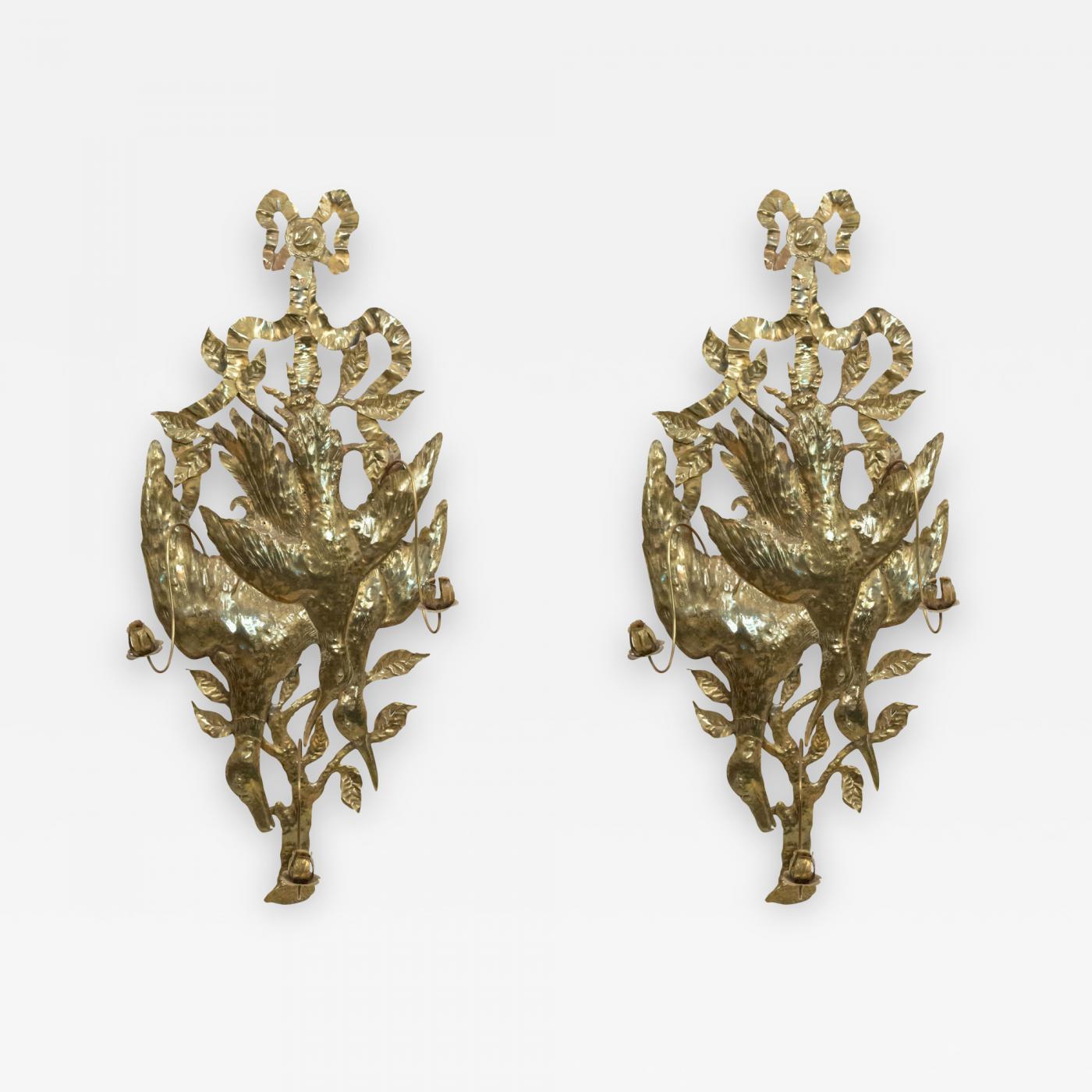 Pair of Rustic Continental German Style Brass Game Bird Wall Sconces