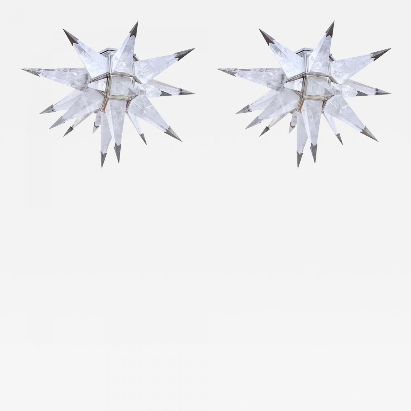A pair of star form rock crystal flush mounts with nickel plating frame and tip. Created by Phoenix Gallery, NYC. Each flush mount installs two sockets, uses 2 candelabra lightbulbs. 60w each, 120w in total.
