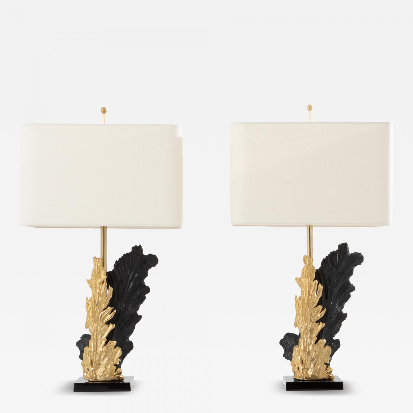 Philippe Cheverny pair of large resin and bronze table lamps 1970s