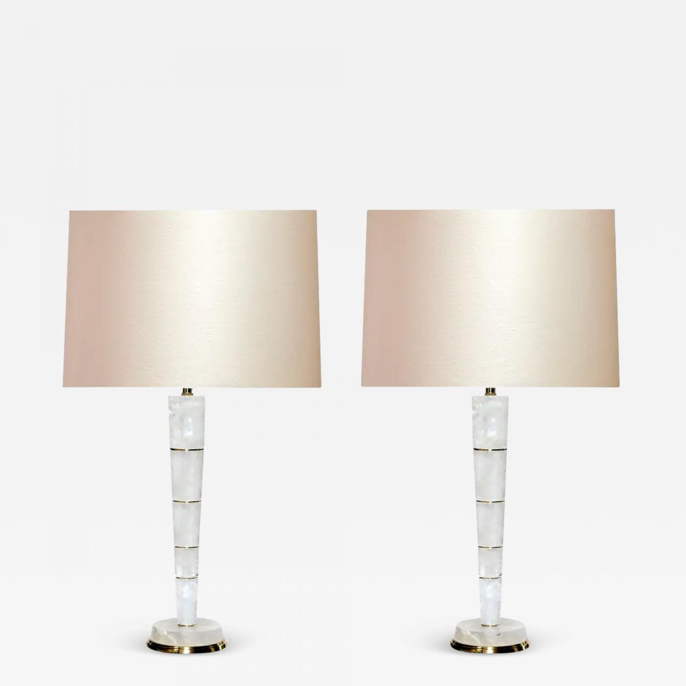 Pair of modern rock crystal lamps with polish brass bases and inserts decoration.