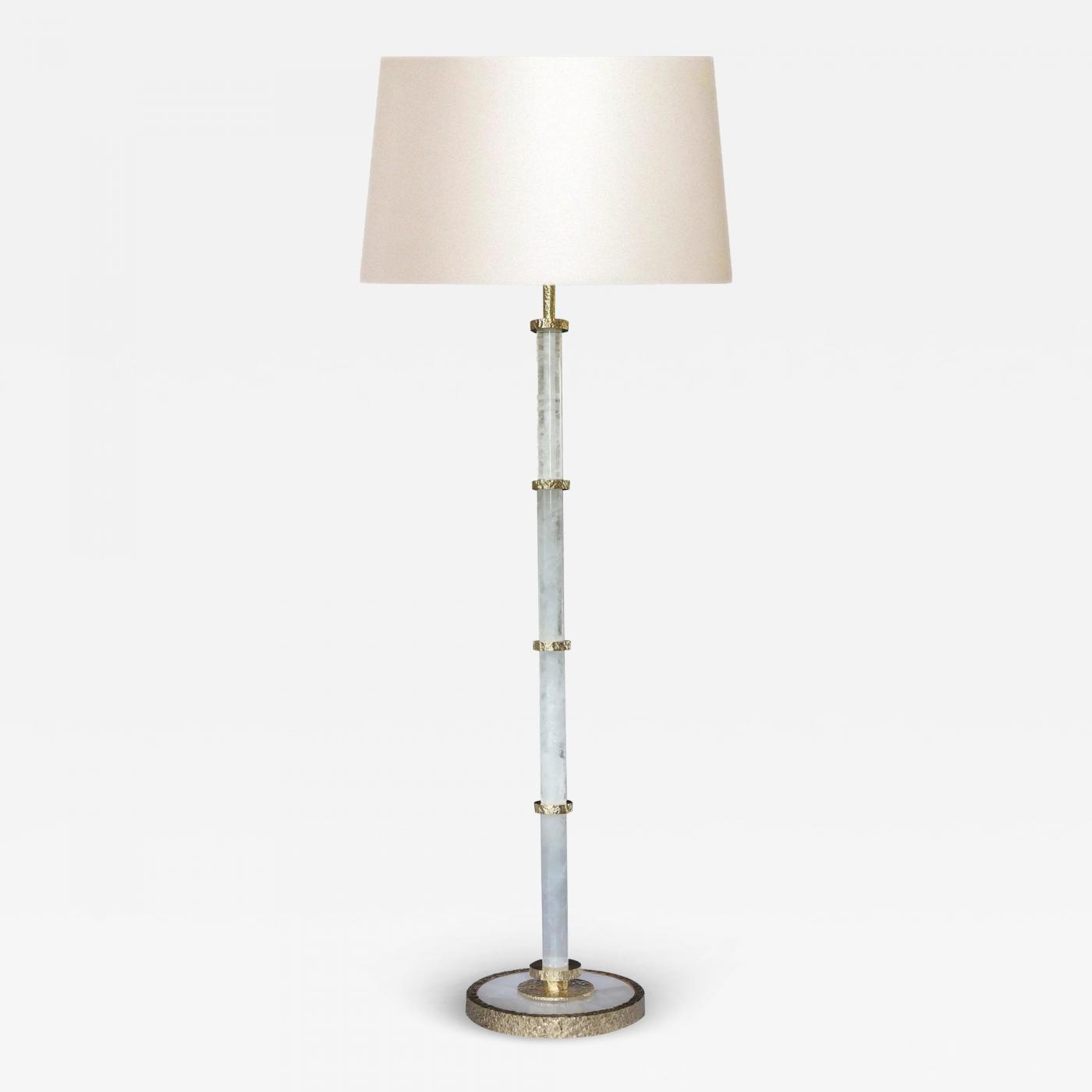 Rock crystal floor lamp with polished brass inserts decoration.