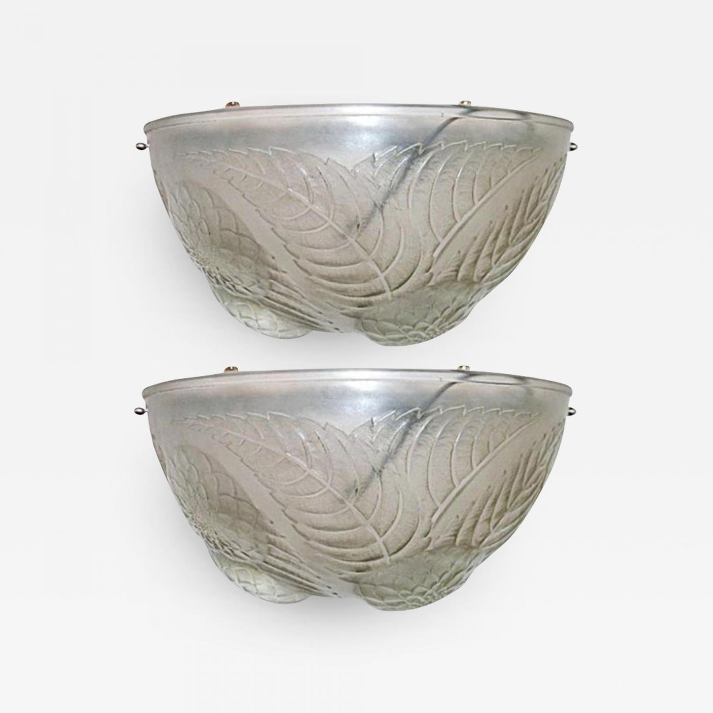 Pair of Lalique “Dahlias” Art Deco Wall Sconces