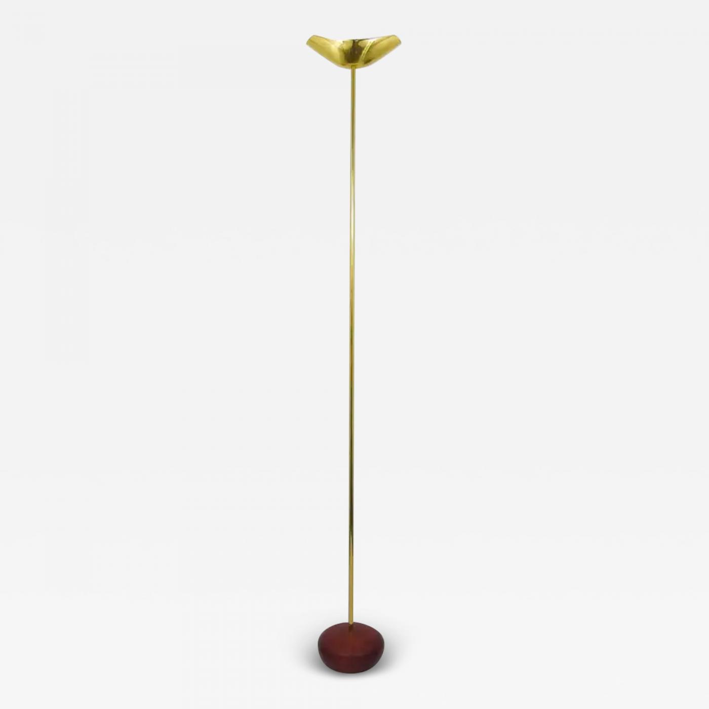 Rodolfo Dordoni Postmodern Brass & Wood Uplight Floor Lamp, Italy, 1980s