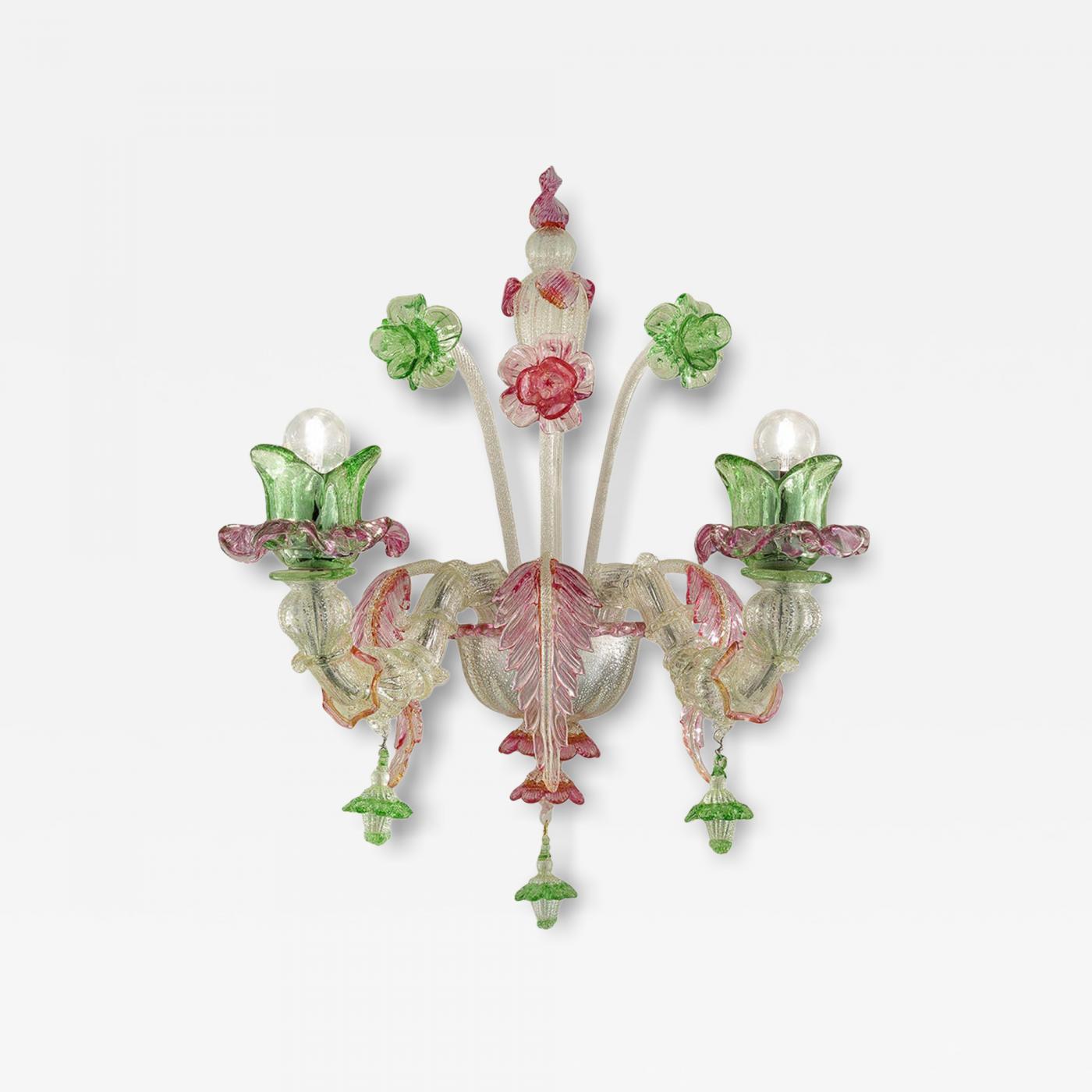 Romantic pink and green Floreal "Cà Rezzonico" Murano glass WALL SCONCE.