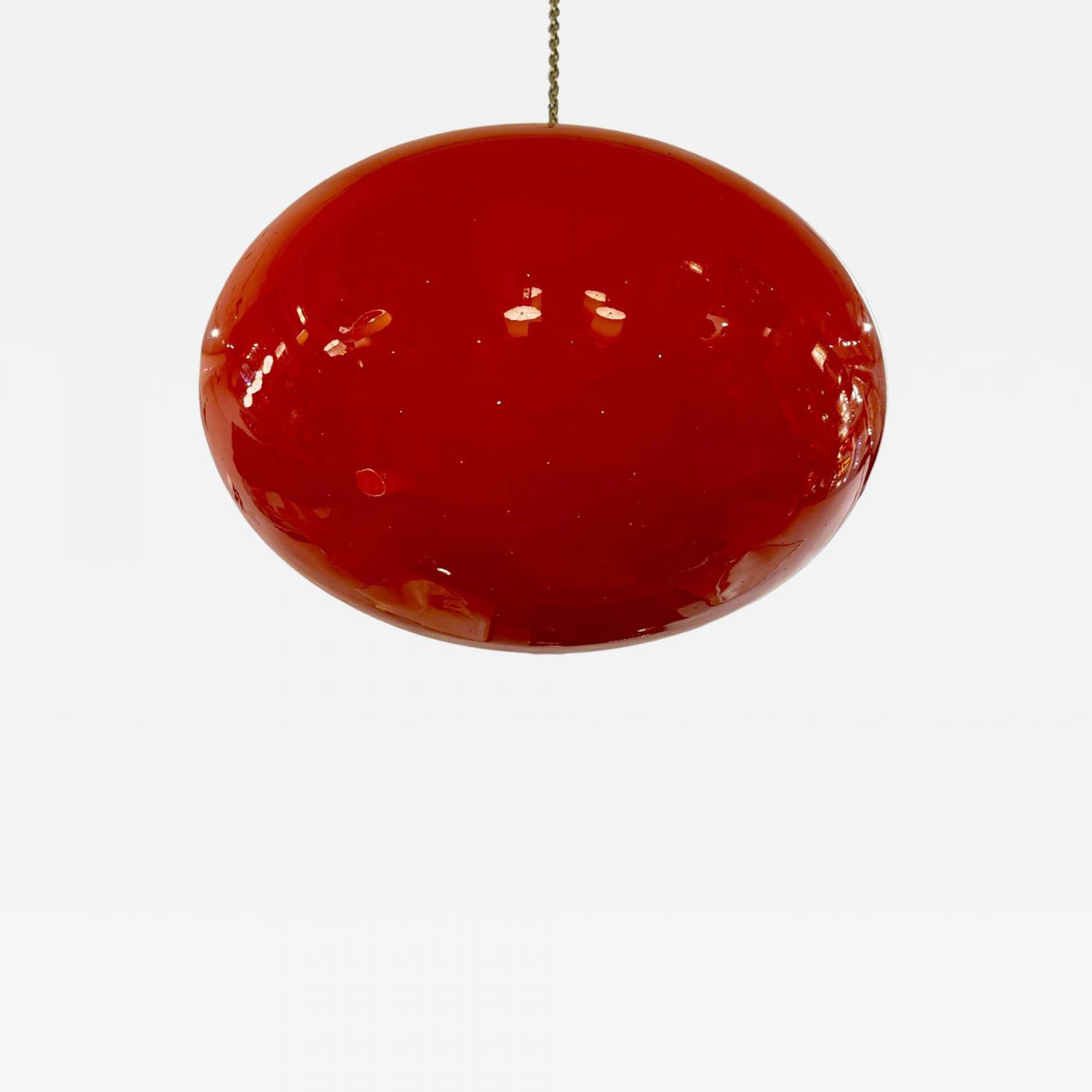 Ron Arad I.P.C.O. Modernist hanging lamp. Red fiberglass "I.P.C.O." (Inverted Pinhole Camera Obscura) Works like a inverted pinhole camera, tiny holes act like lenses and project the light onto its surroundings. Signed by Ron Arad and 18/50 at top. THIS FIXTURE IS NOT UL WIRED.