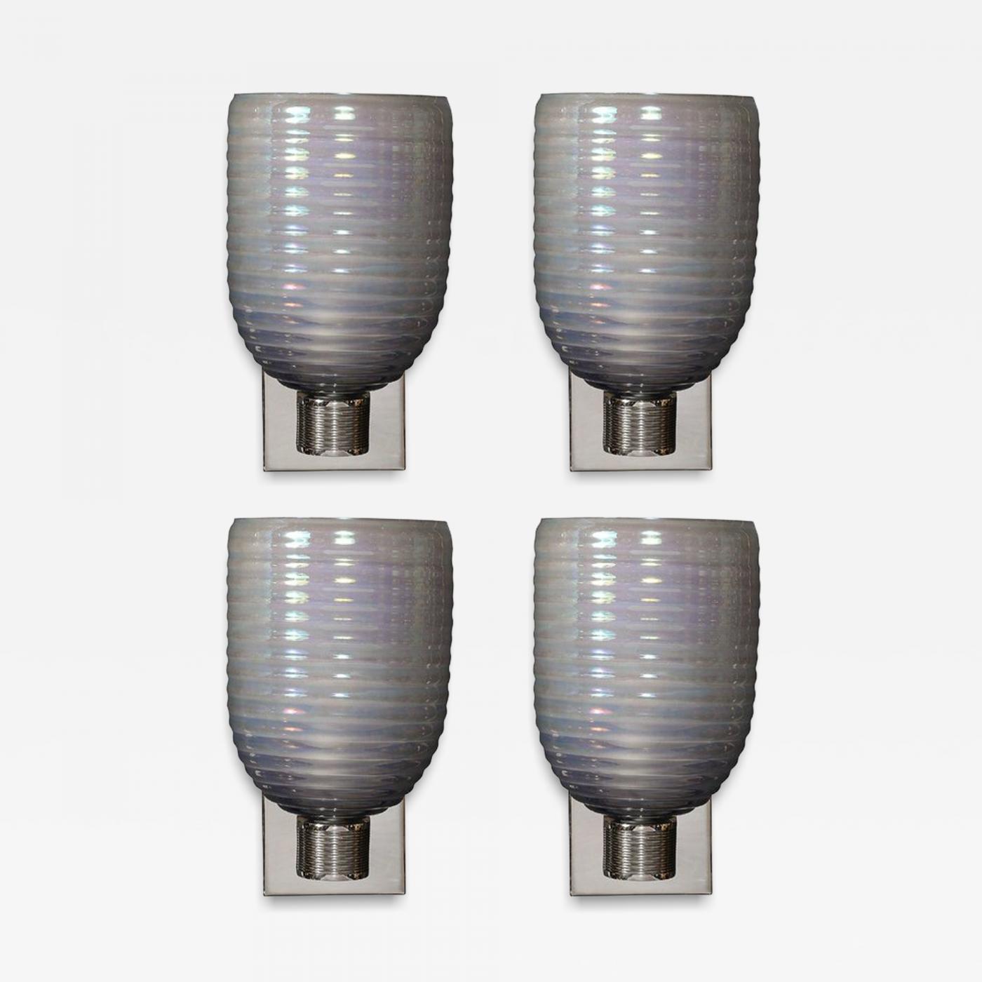 Set of 4 Modernist Hand-Blown Smoked Cerulean Hive Murano Glass & Nickel Sconces