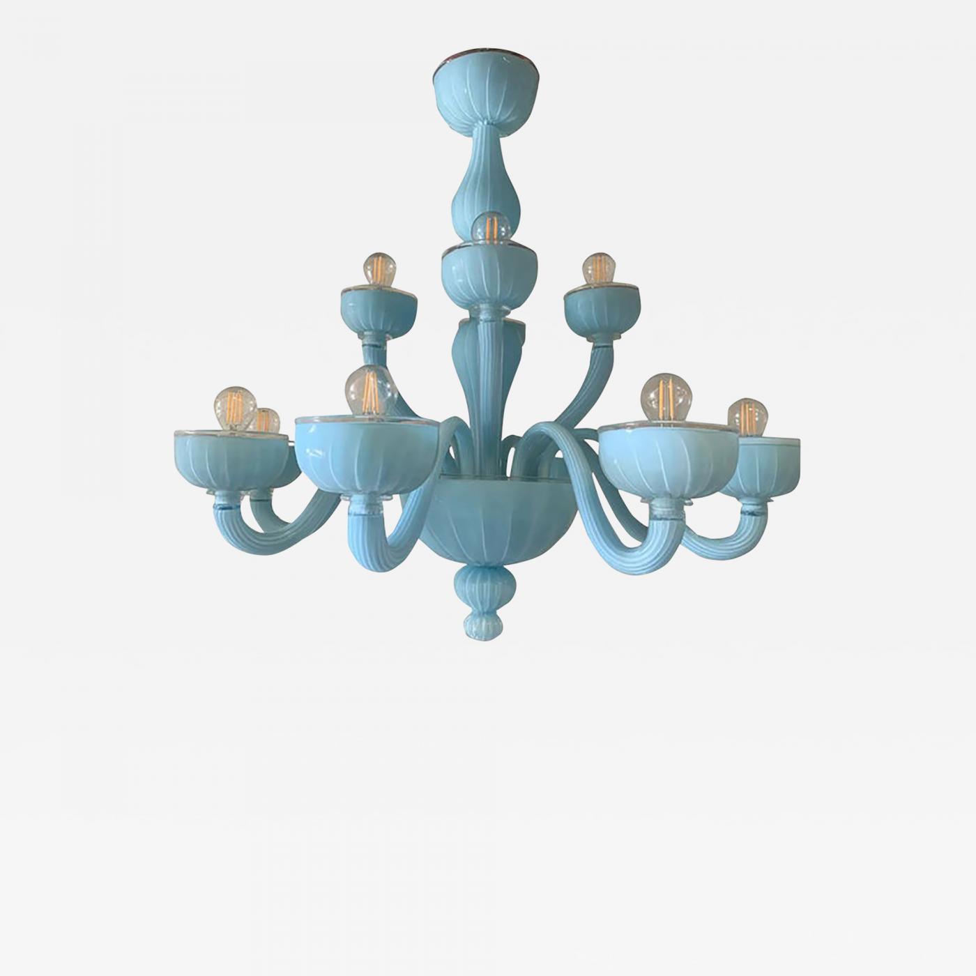 - Contemporary Matte Light-Blue Murano Style Glass Chandelier