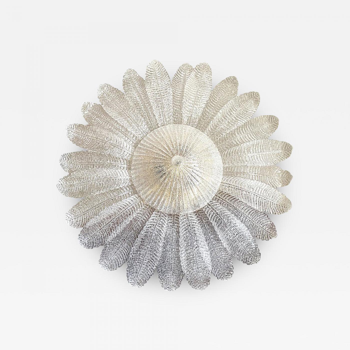 Contemporary Venetian Sunflwer Murano Glass White Flush Mount