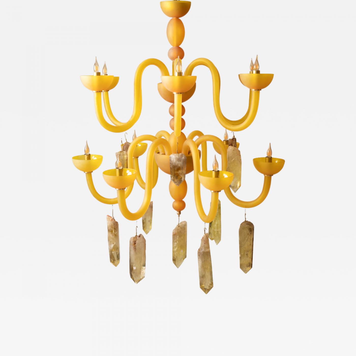 12-arm chandelier in Murano blown glass with a sandblasted finish and natural citrines -