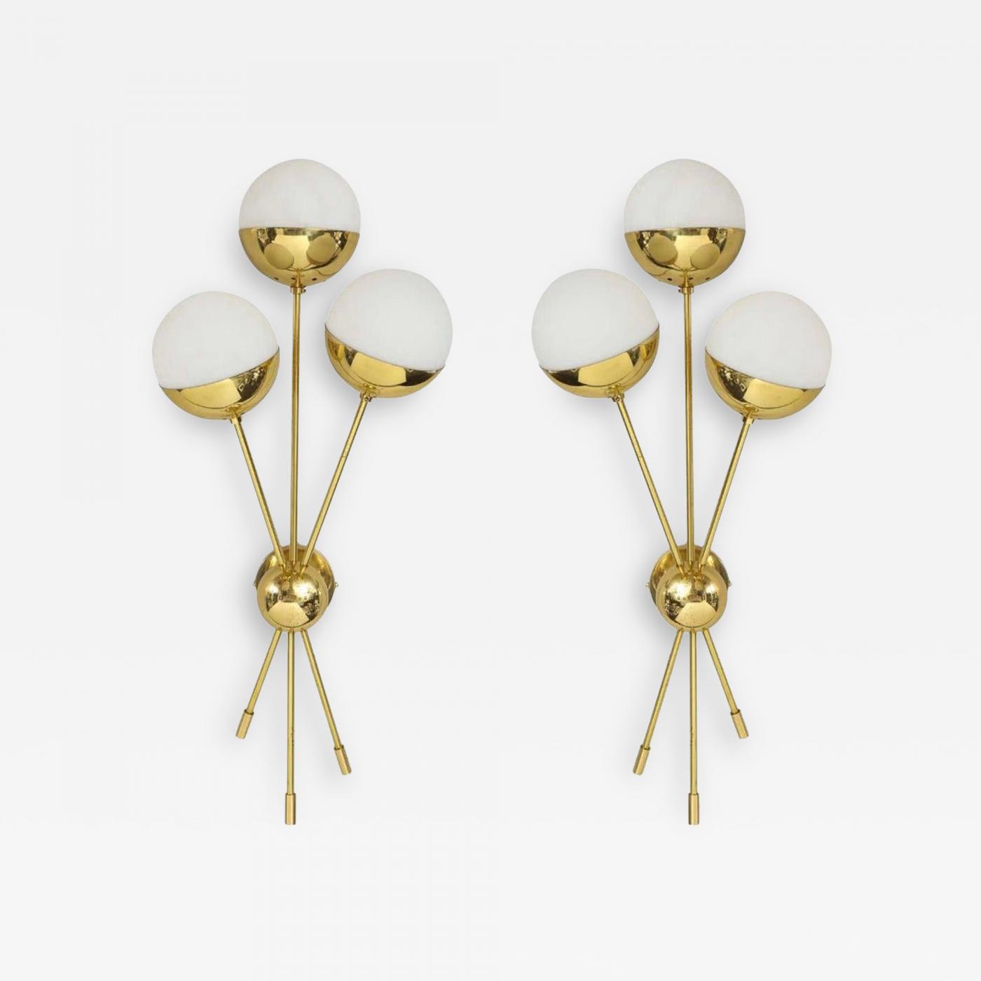 In the Style of: Stilnovo Origin: Italy Period: New Materials: Brass,Opaline Glass,Polished Condition: New. Rewired: The sconces have been rewired for the United States. Creation Date: 2025 Styles / Movements: Modern, Contemporary, Mid Century Incollect Reference #: 840728 -