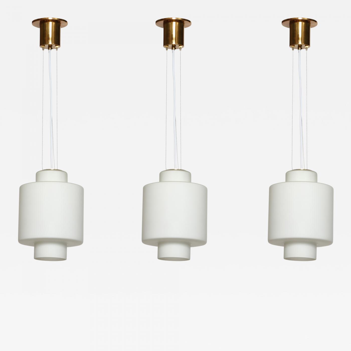 - Luigi Caccia Dominioni ceiling pendants in opaline glass and brass, attributed