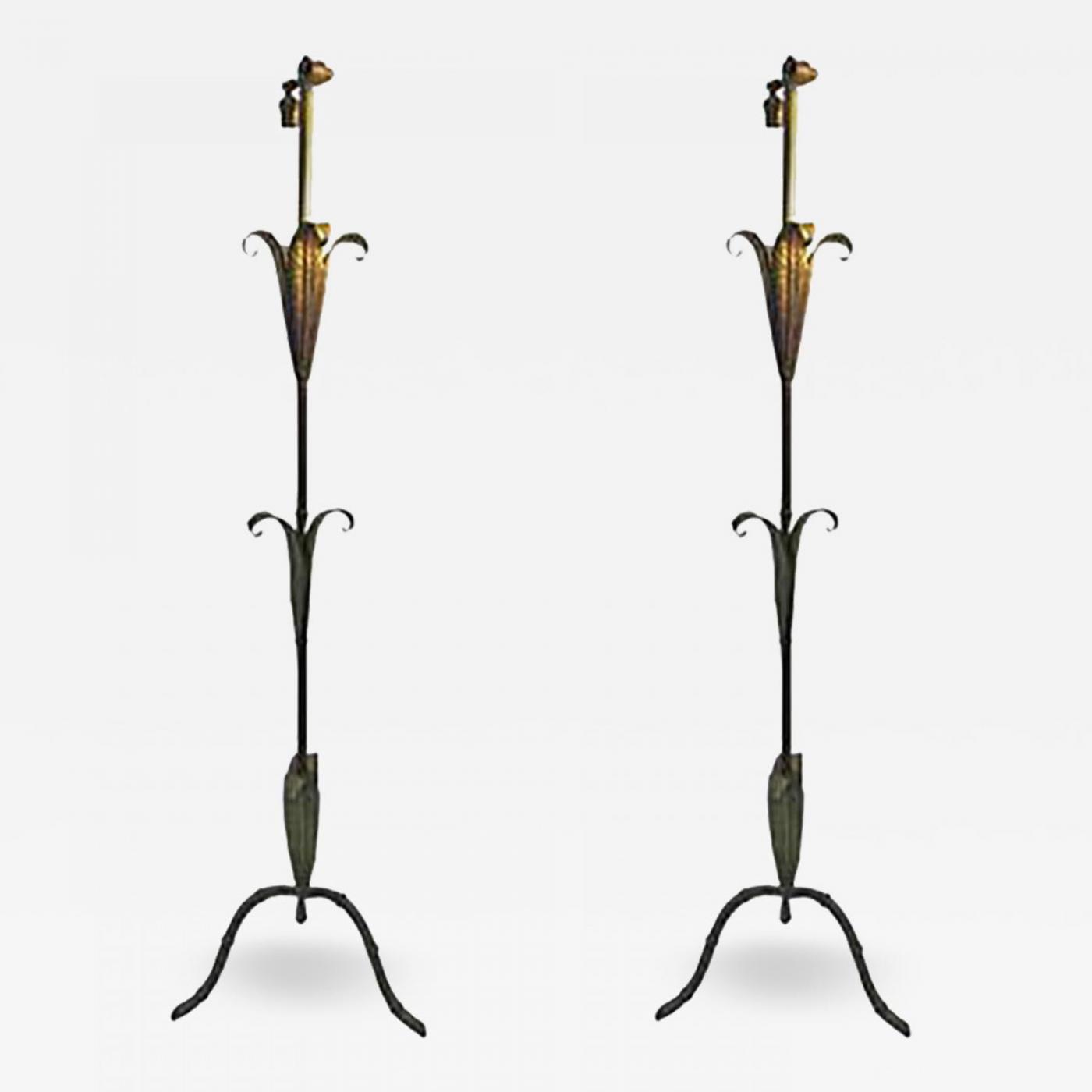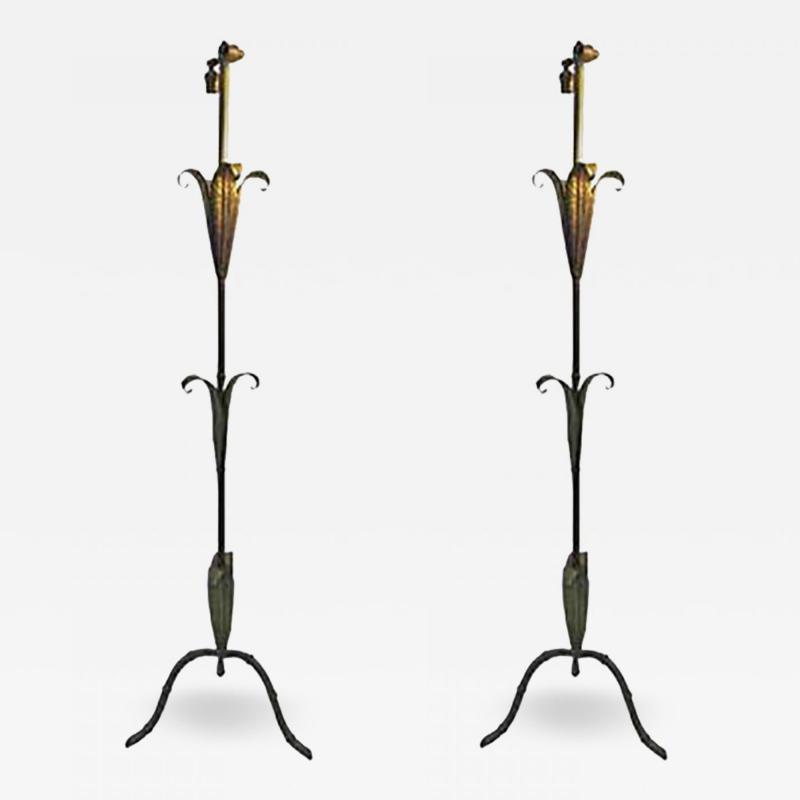 GRACEFUL HAND FORGED METAL LEAF FLOOR LAMPS WITH TRIPOD BASE BY JOHN SALTERINI