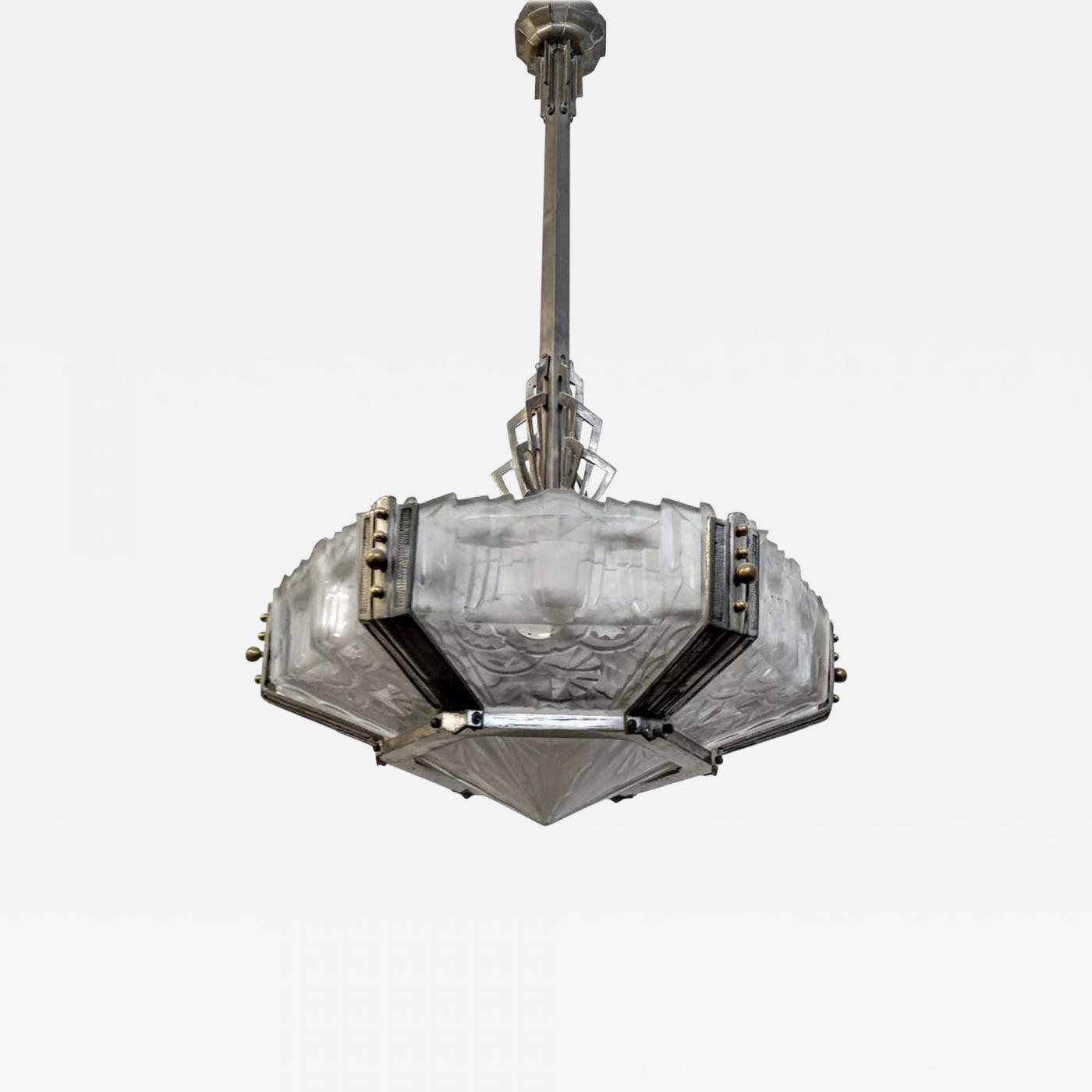 - French Art Deco Chandelier Signed by Hanots