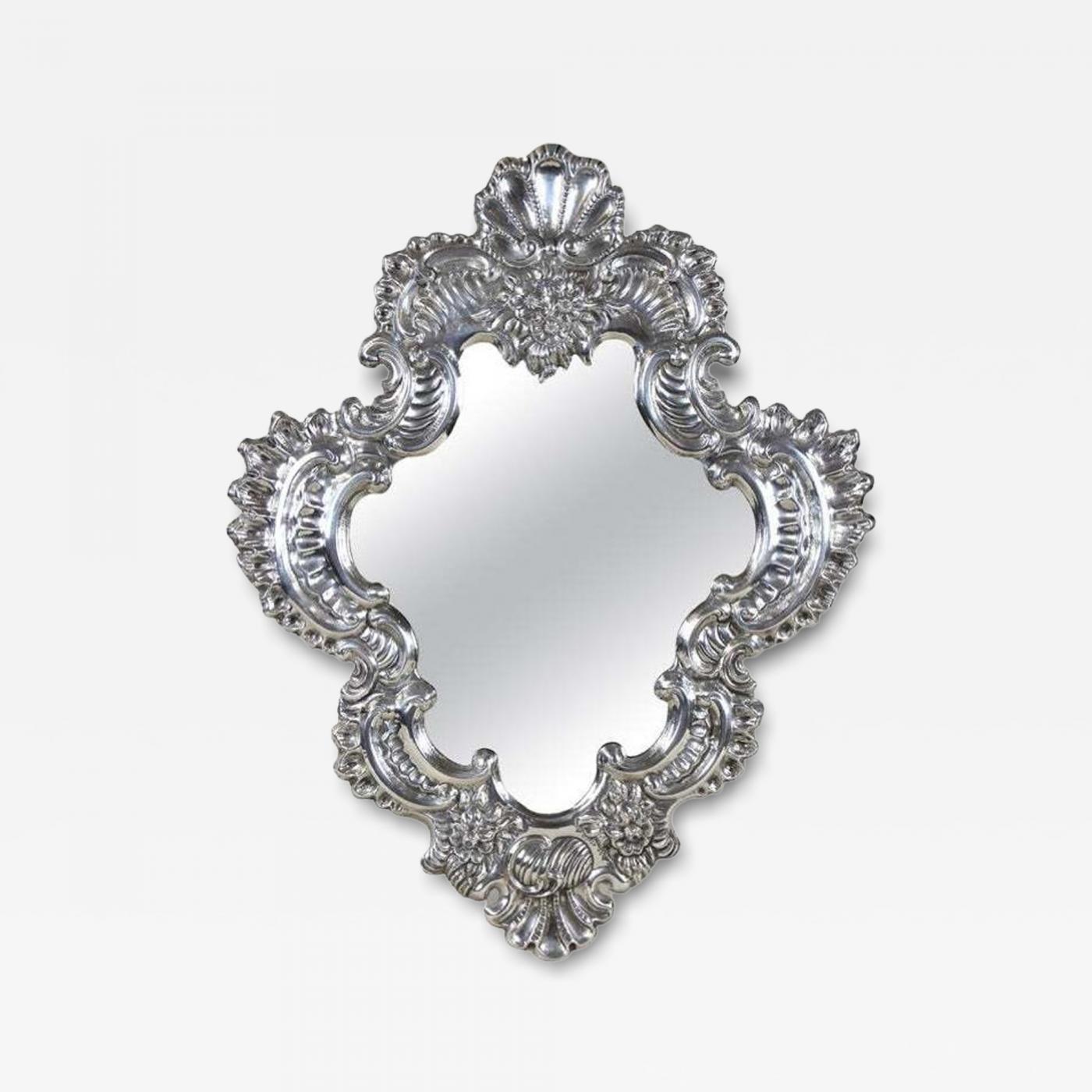 19th Century Italian Silvered Wall Mirror, Embossed Copper, Venice ca. 1880