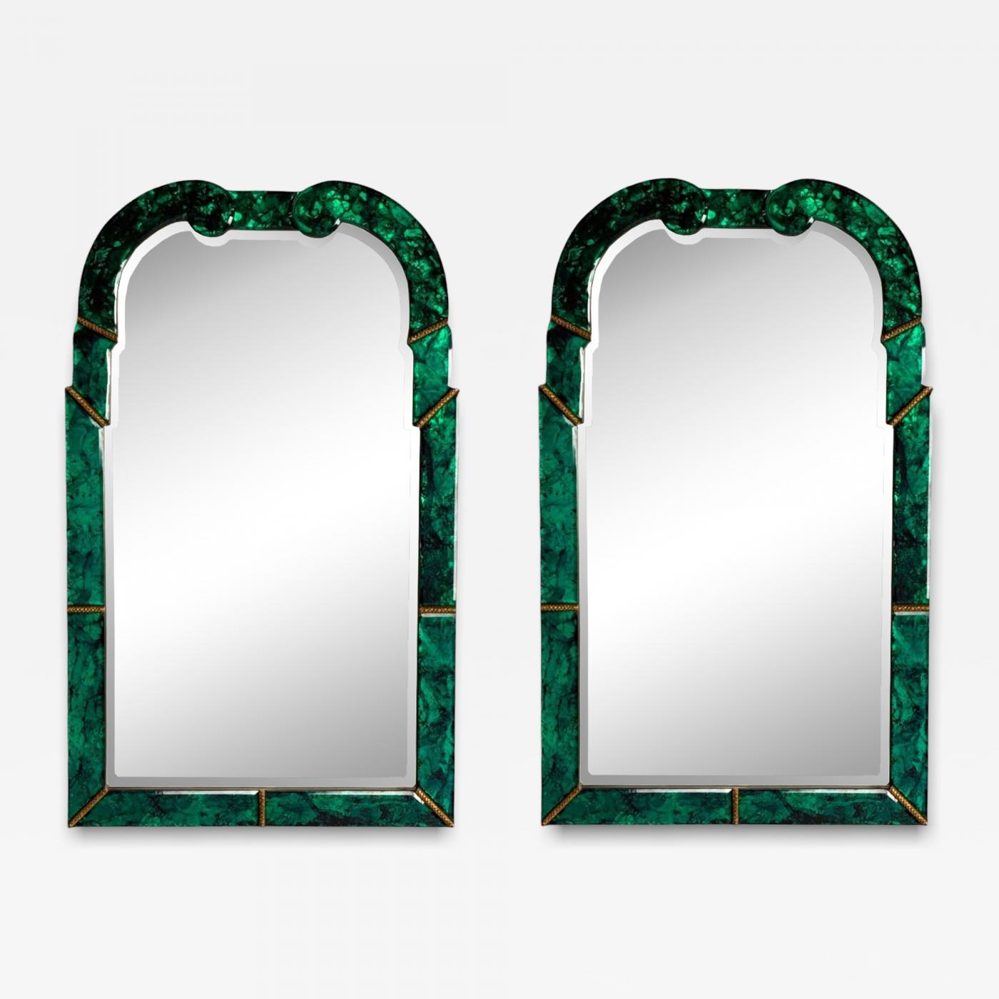 Art Deco Style, Green Antiqued Beveled Glass, Venetian Wall Mirrors