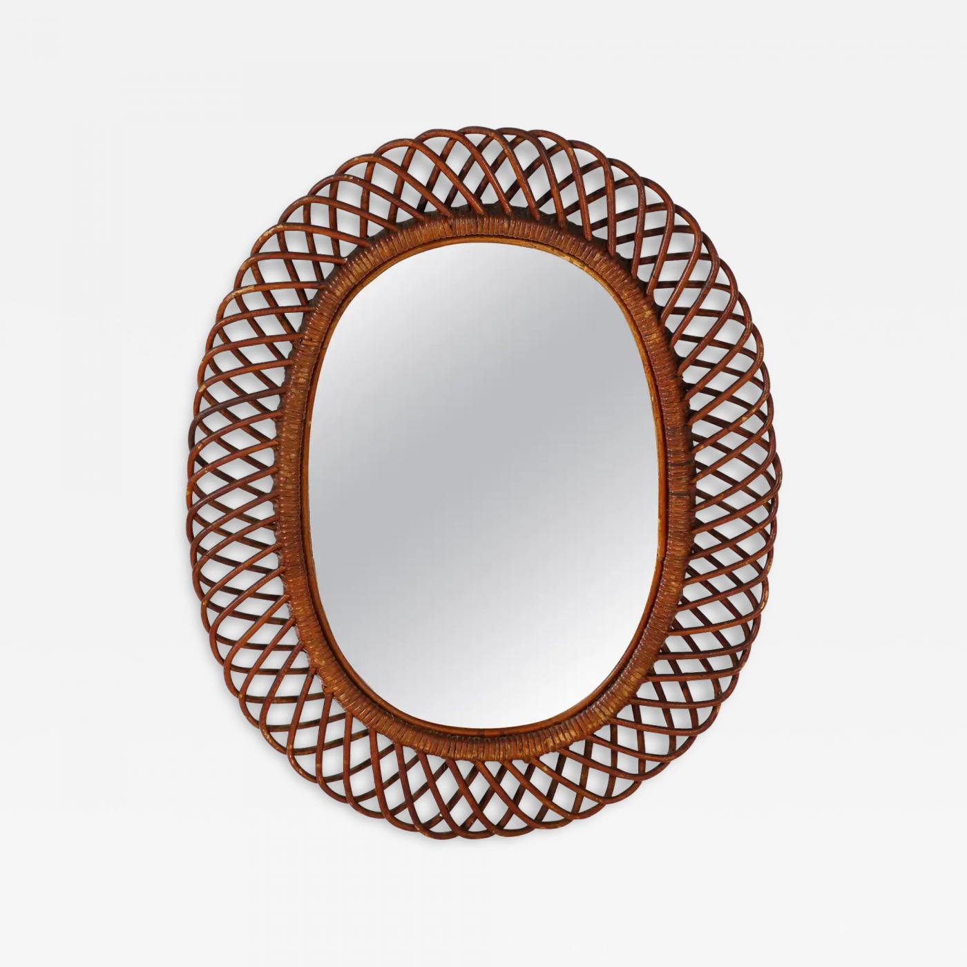 Italian Bonacina Bamboo Oval Mirror, circa 1950