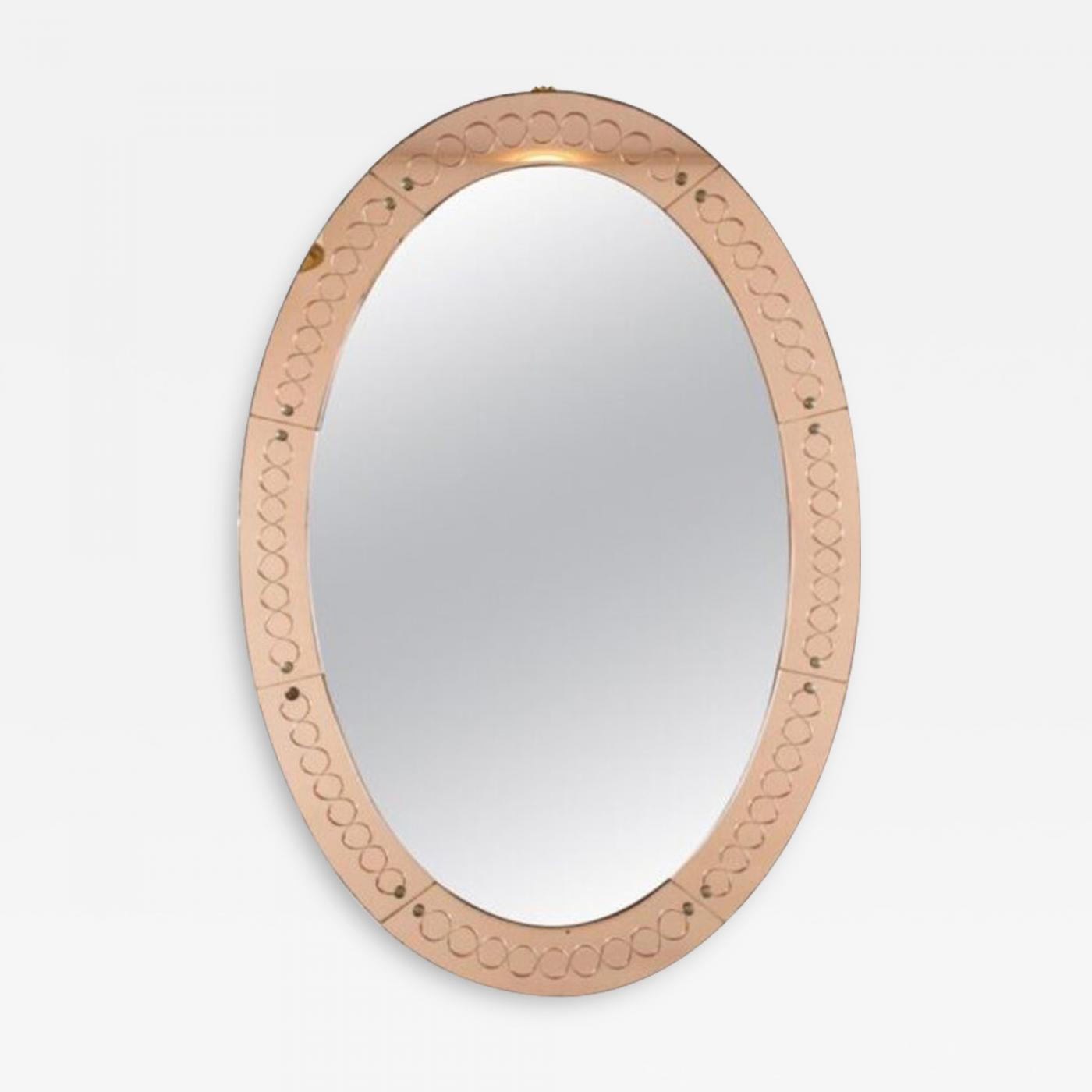 Large Italian Mid Century Oval Etched Mirror By Cristale Arte