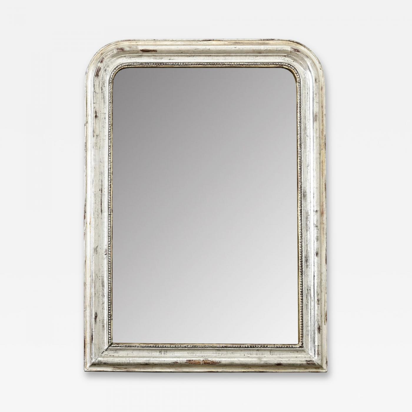 A French 19th century Louis Philippe mirror with an understated, silver gilt frame enhanced by dark oxidation and craquelure texture. Note there are a few cracks and areas of wear which give authentic patina to the design. The original mirror plate is outlined by a beaded or “pearl” trim, spotted with a few areas of foxing in the glass, drawing the viewer in for a closer look. This gorgeous mirror will be right at home in many decorating tastes. Please view the detailed images to see more. -