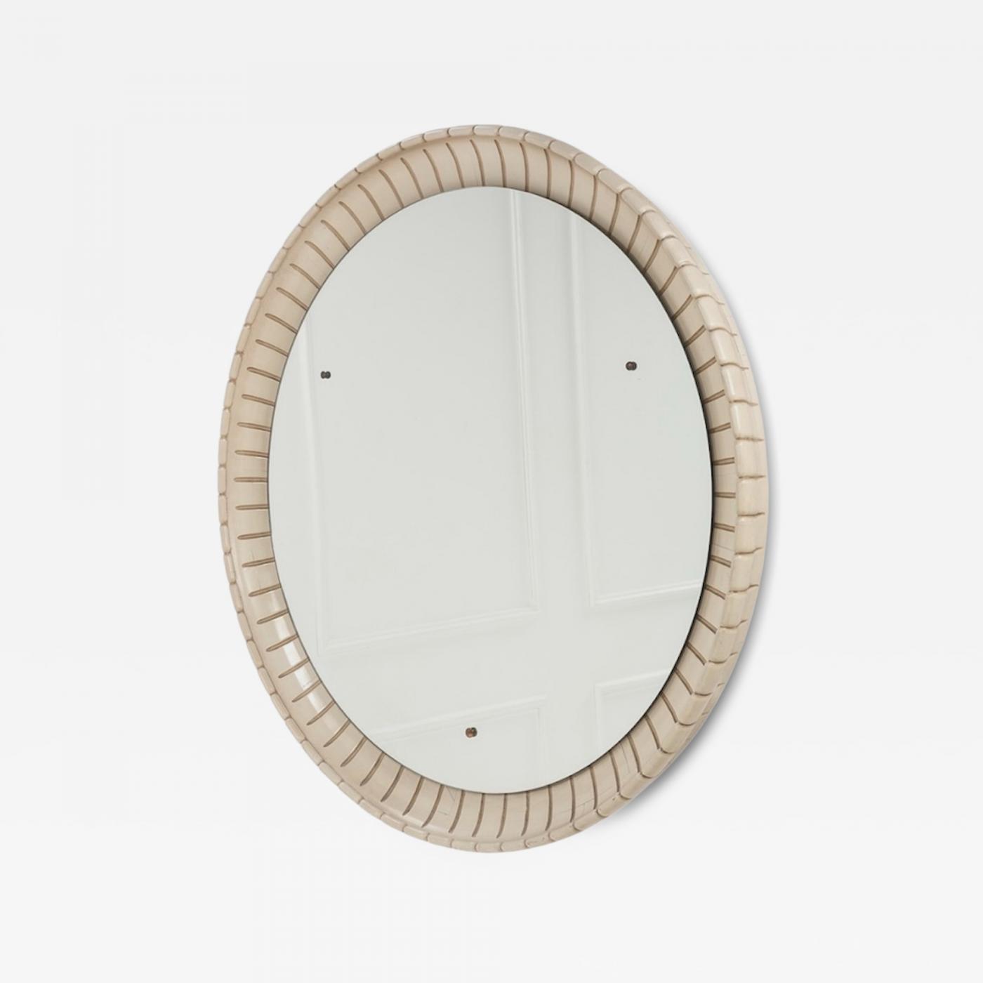Stunning large round mirror by Giovanni Gariboldi . Frame in lacquered sculptured wood .