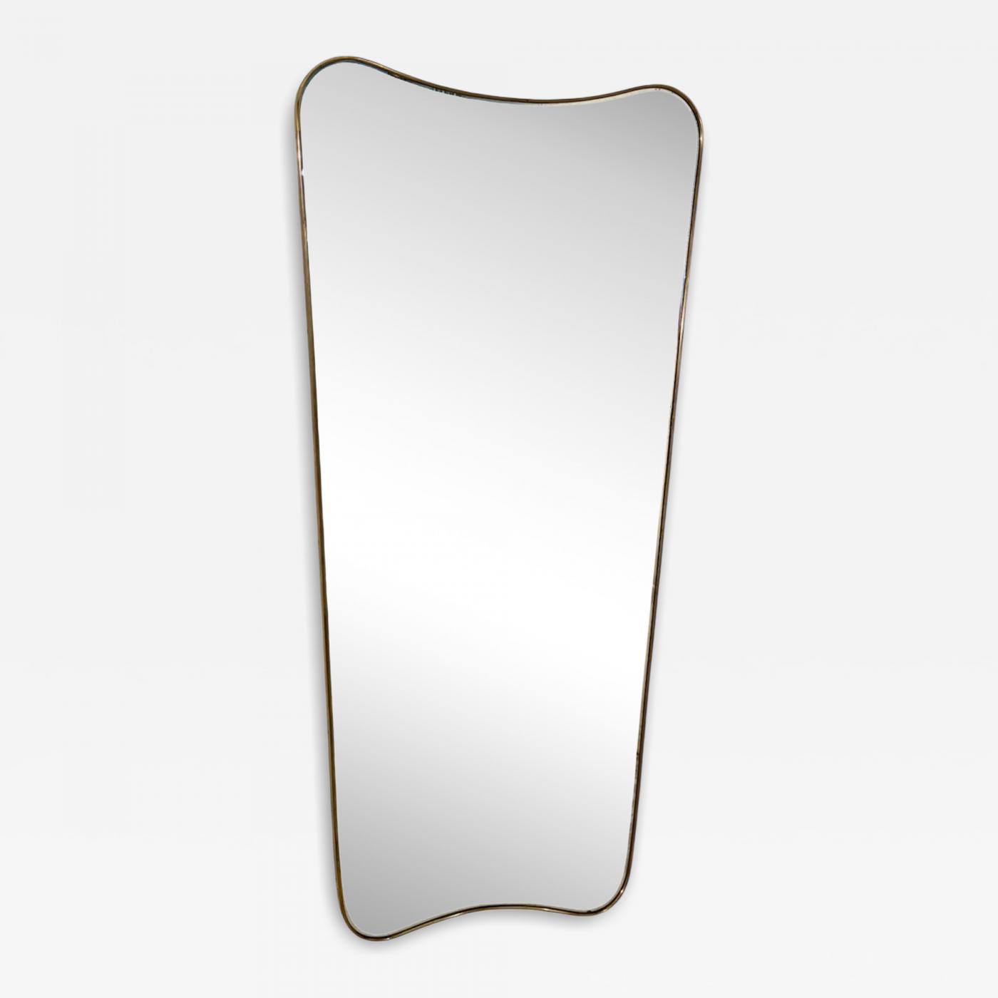 Featuring a softly contoured free-form silhouette, the mirror is framed with a slender brass border that emphasizes its organic lines and refined profile. The asymmetrical shape reflects the playful sophistication characteristic of Italian design during this era, often associated with Gio Ponti and Fontana Arte influences.