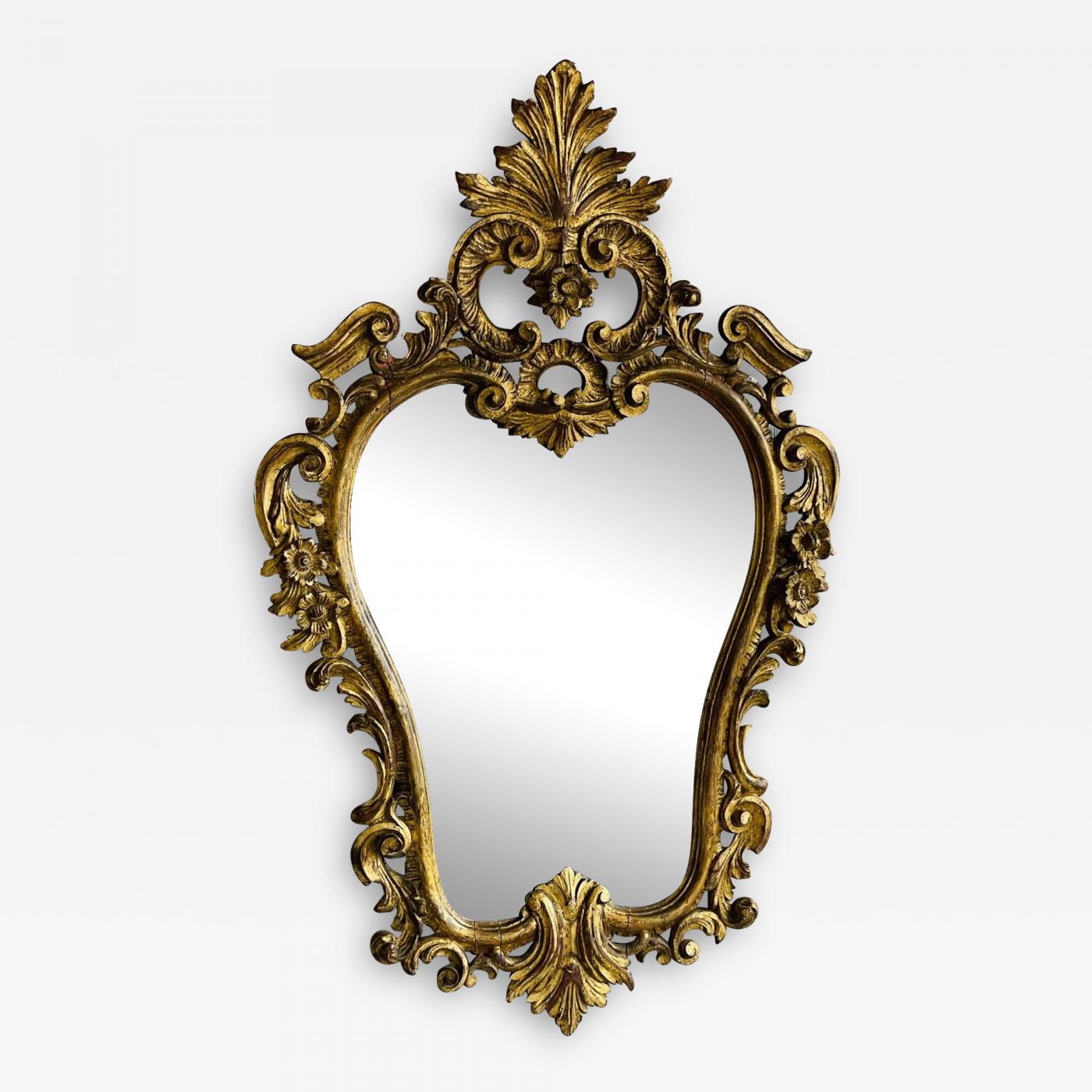 Having an oval carved wood frame of gilt design featuring a floral and shell crest motif. Good condition.