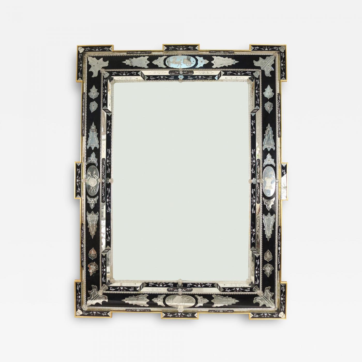 Italian Venetian Style Monumental Etched Glass Wall Mirror