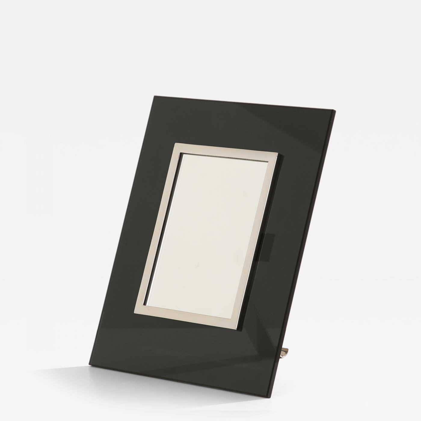 La Maison Desny Art Deco nickel metal opaline glass table vanity mirror 1930s