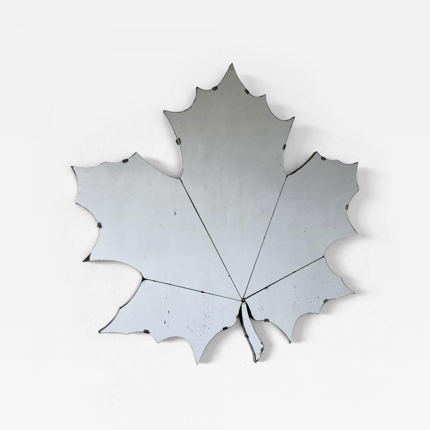 Mirrored glass, nickel-plated metal, partially silvered wood.