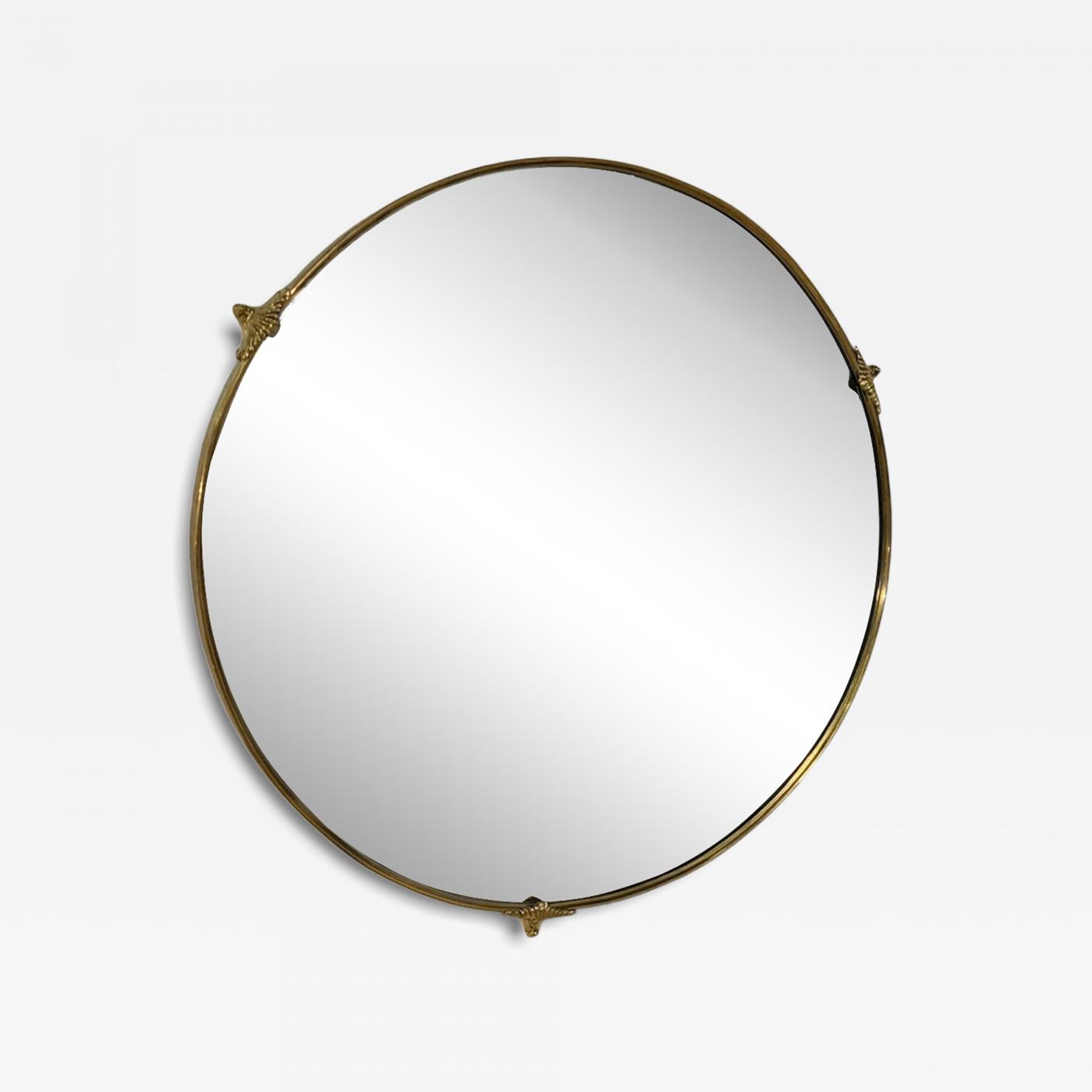 Round Brass-Framed Wall Mirror with Decorative Mounts, Italy 1960s