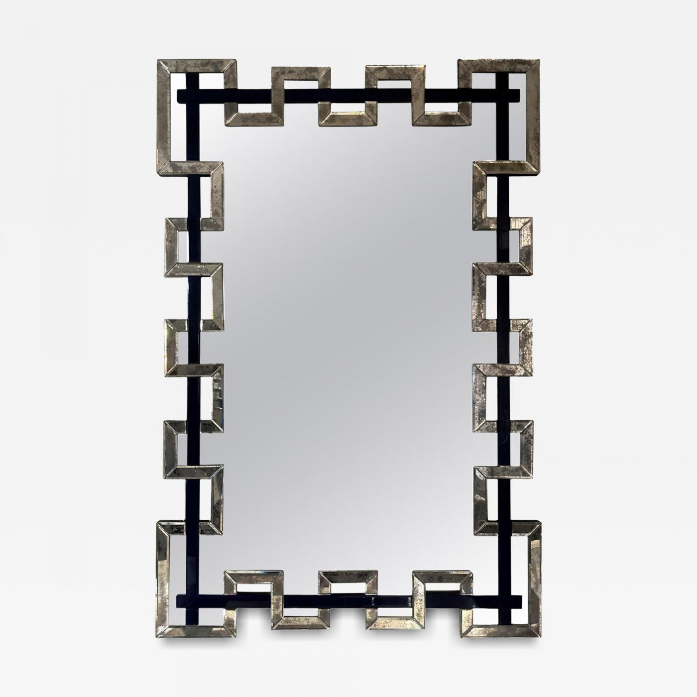 Segmented Mirror and Navy Murano Glass Lattice Frame Mirror