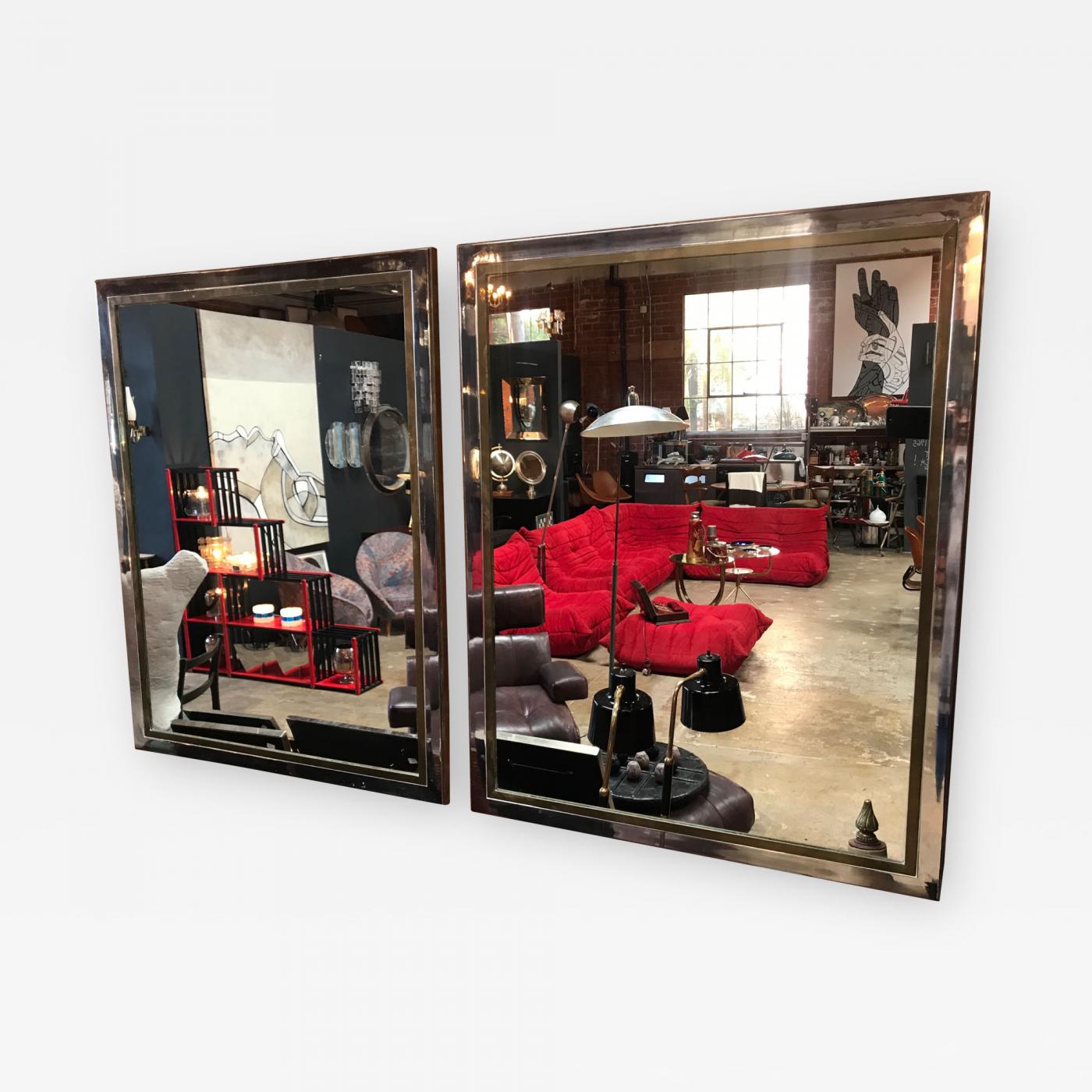 Pair of Brass and Chrome Mirrors by Willy Rizzo, Italy, 1970s