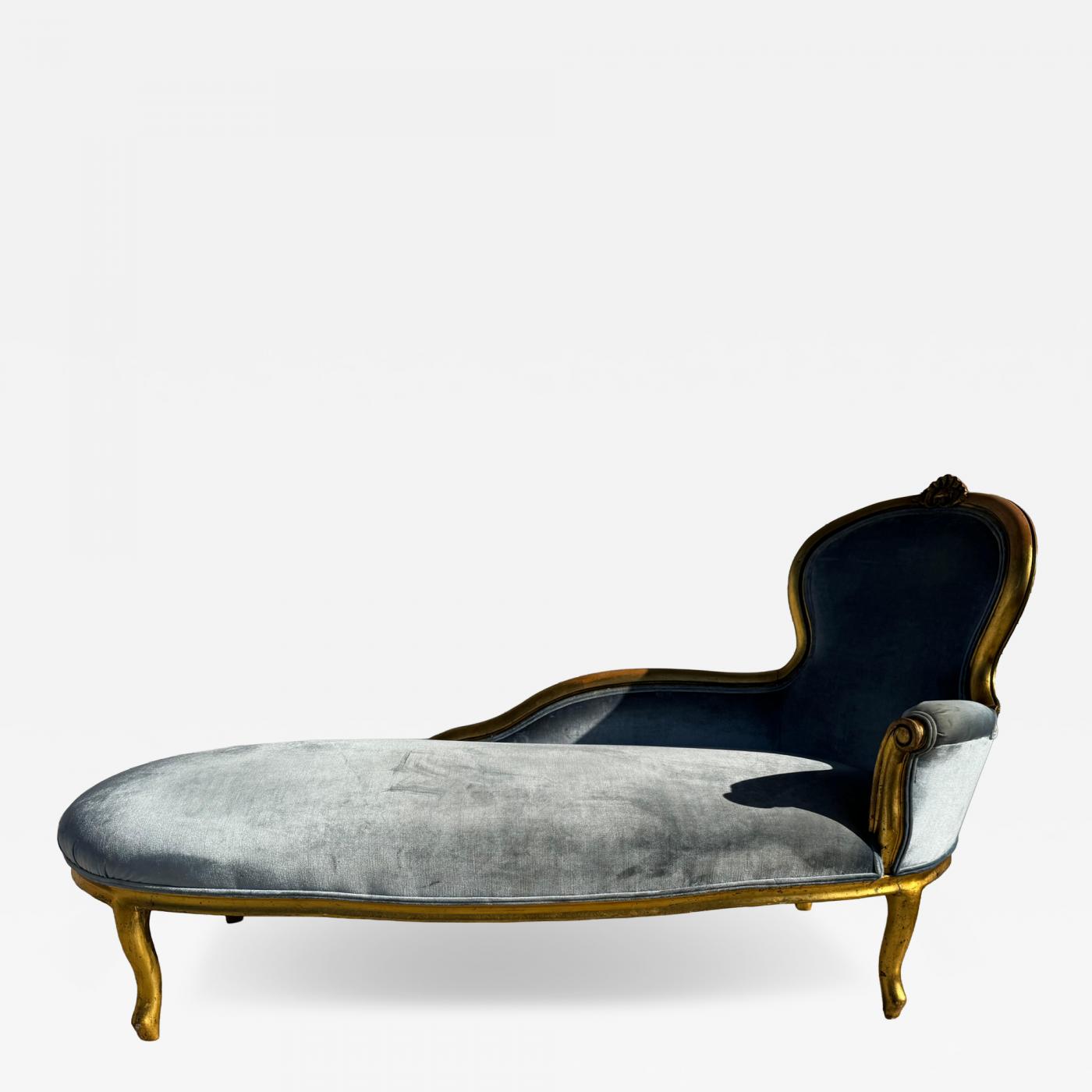 1940's French Provincial Giltwood Chaise Lounge in Velvet Fabric
