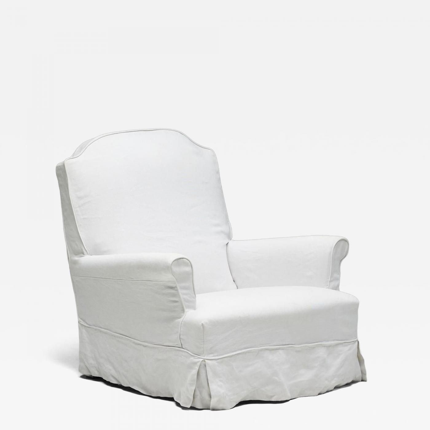 Upholstered in a loose linen slipcover, the chair introduces a tactile softness that enhances its relaxed character. The slightly irregular drape of the fabric and the natural tone of the material contribute to its quiet presence, while the generous seat and enveloping backrest emphasize usability. Rather than relying on ornament, the design draws its strength from proportion and texture, resulting in a piece that feels both grounded and enduring within a wide range of interiors. - More Information