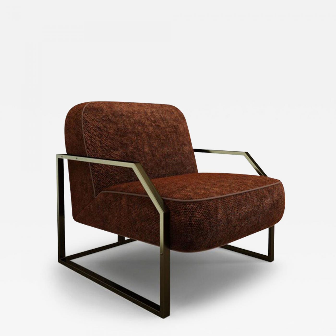 20120 Create a sumptuous lounge atmosphere in a contemporary space with the Evie Armchair. On a minimalist base with a bronze finish, the chair is characterized by its deep and wide seat, inviting you in for a cozy evening. The plush armchair can be personalized with a variety of upholsteries to suit any home. Metal structure; 33.85″ x 31.5″ x 33.85″ h. Seat 16.9″ h. -