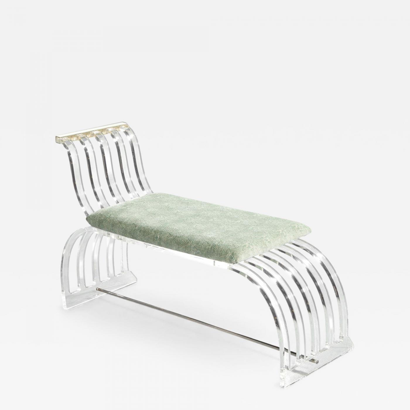 This vintage acrylic lounge chair, crafted in the manner of Charles Hollis Jones, features a beautifully curved and sculpted acrylic frame that captures the bold elegance of 1970’s design. Its textured mint-green upholstery adds a refreshing pop of color, accented by a subtle brass detail and polished metal stretcher. With only minor wear to the acrylic consistent with age, the chair remains in remarkable condition. A striking, sculptural piece that brings both glamour and originality to any interior. Price includes complimentary scheduled curb-side delivery within the continental USA, with all duties and tariffs covered. Please note that this service requires the customer to handle unpacking and moving the items into the home. White glove delivery is available upon request and quoted based on location, please inquire for details.