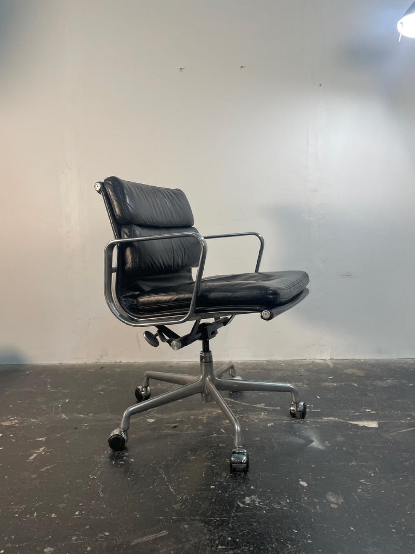 Charles and Ray Eames had ideas about making a better world, one in which things were designed to fulfill the practical needs of ordinary people and bring greater pleasure to our lives. Their Soft Pad Collection (1969) of luxuriously padded chairs evolved from their Aluminum Group Collection. With the addition of plush 2” thick cushions, the Soft Pad Collection retains the style of the earlier one but adds significant comfort.