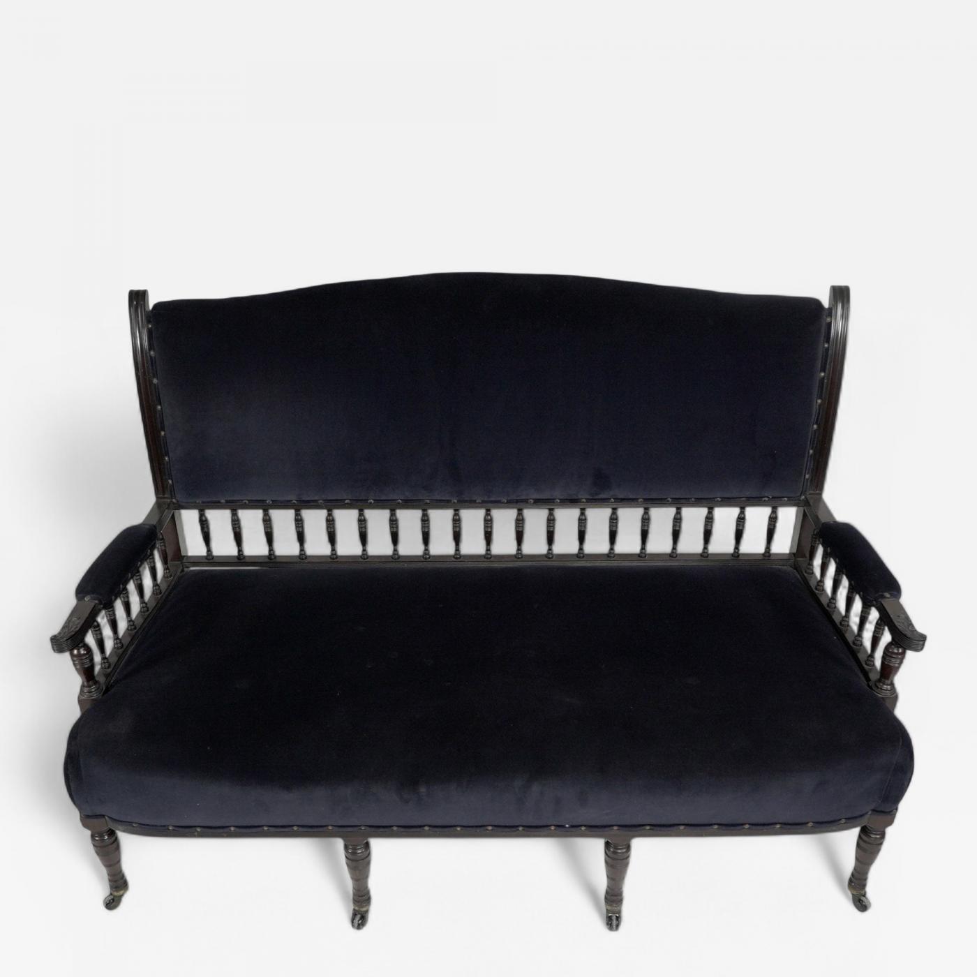 Collinson & Lock. An Anglo-Japanese Mahogany Settee with Carved & Scrolled Arms