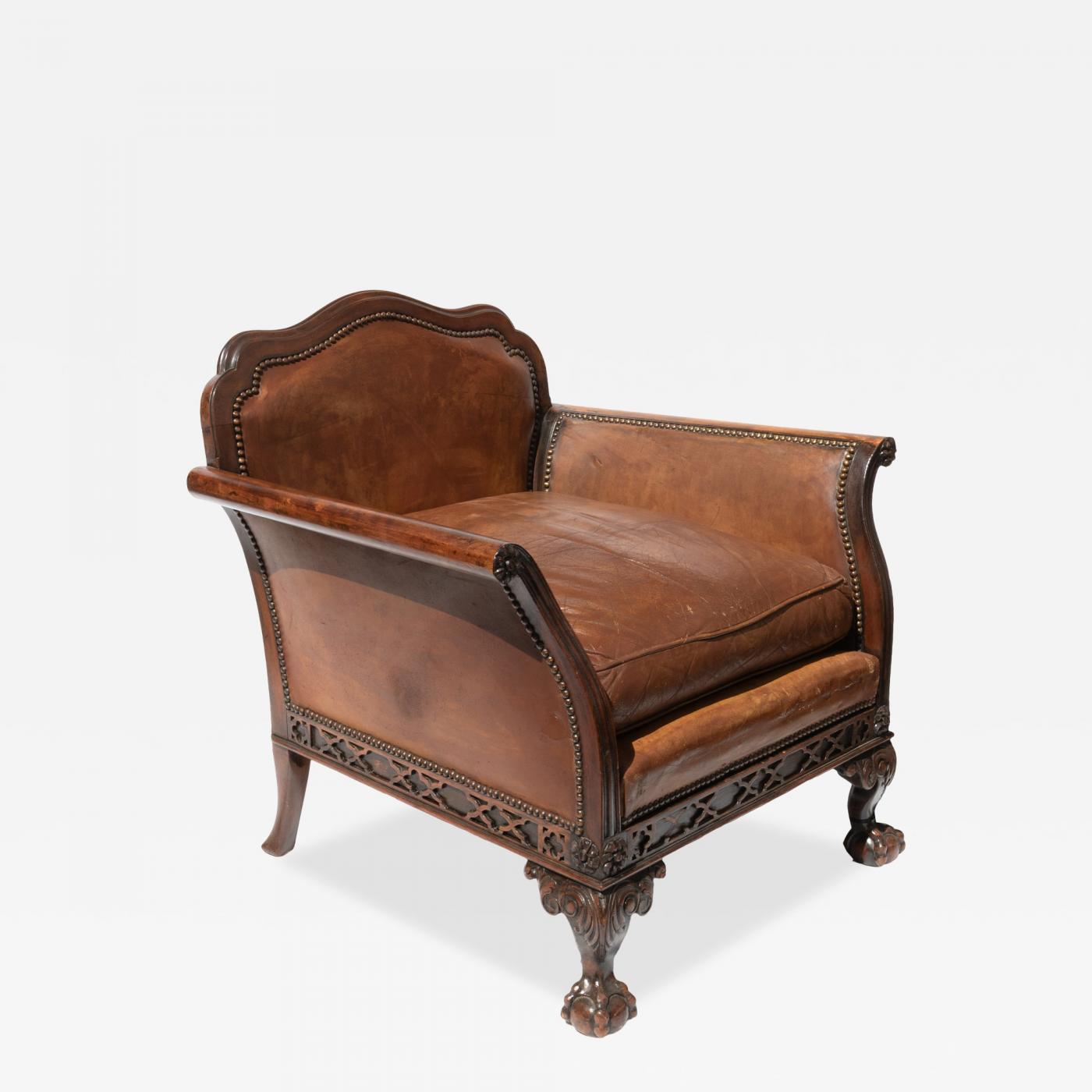 Edwardian Leather and Mahogany Armchair English, circa 1890