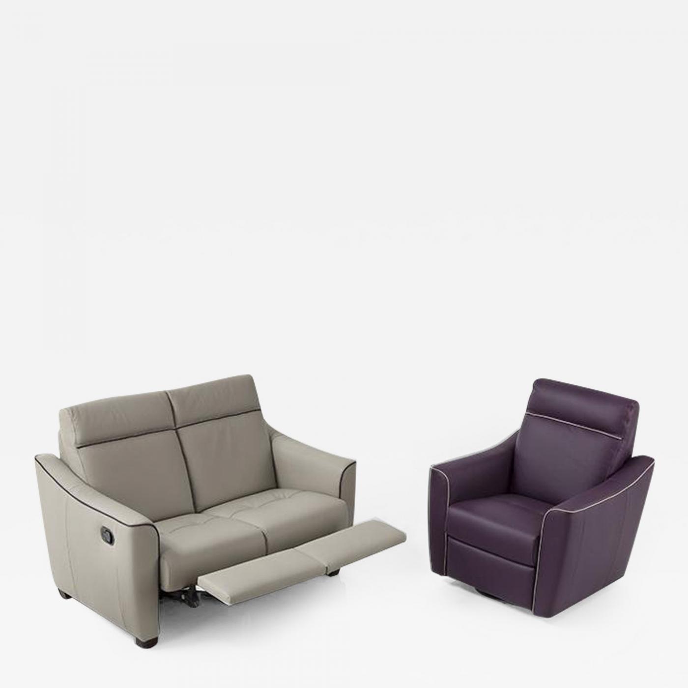 Swivel armchair with manual recliner. Available love seat. In the relax version it is made with combined mechanism: footrest- backrest. Available both manual or electric with controls placed on the armrest side. With the electric mechanism the model is not available with swivel base.