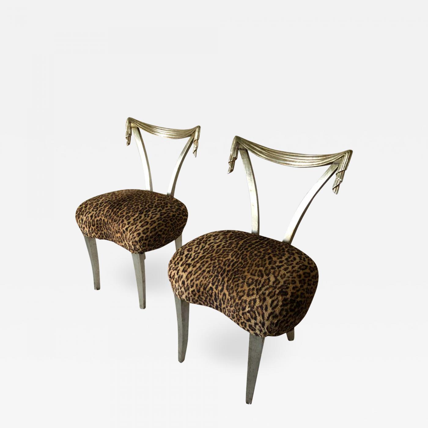 Pair of Grosfeld House Silver Leaf Leopard Tassel Chairs