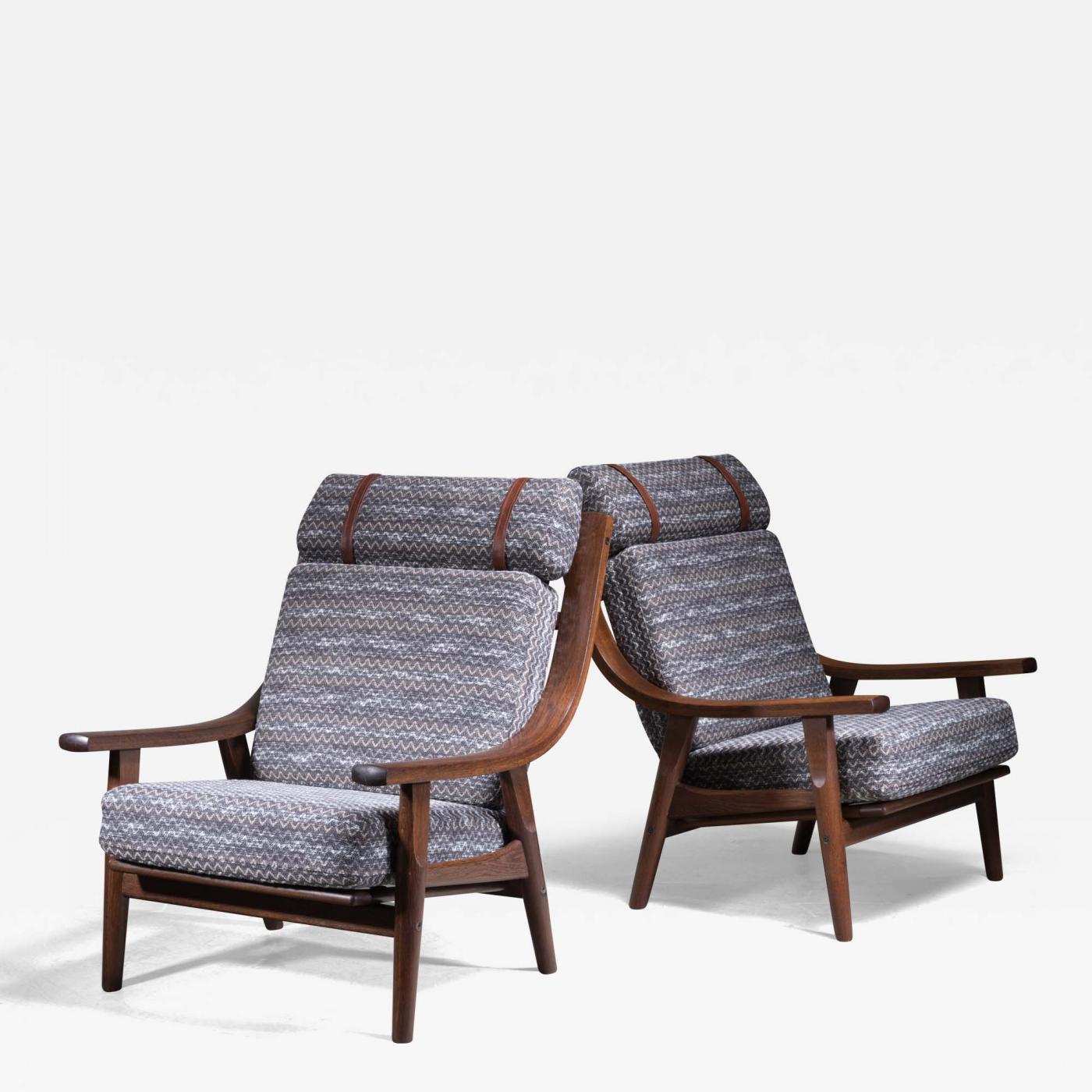Pair of Hans Wegner oak lounge chairs