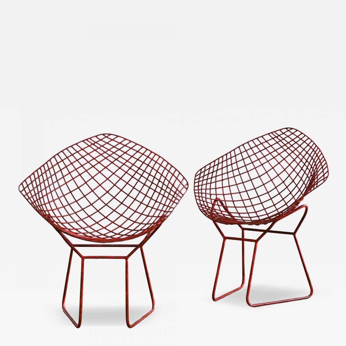 Pair of China red lacquered “Diamond” chairs by Harry Bertoia.