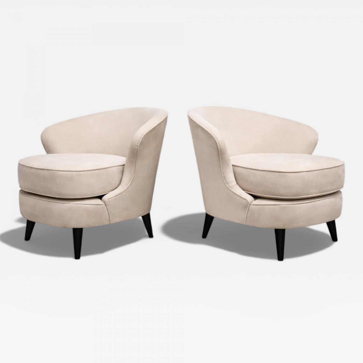 Pair of “Concha” Armchairs in Grey Ultra Suede, Joaquim Tenreiro, 1960s