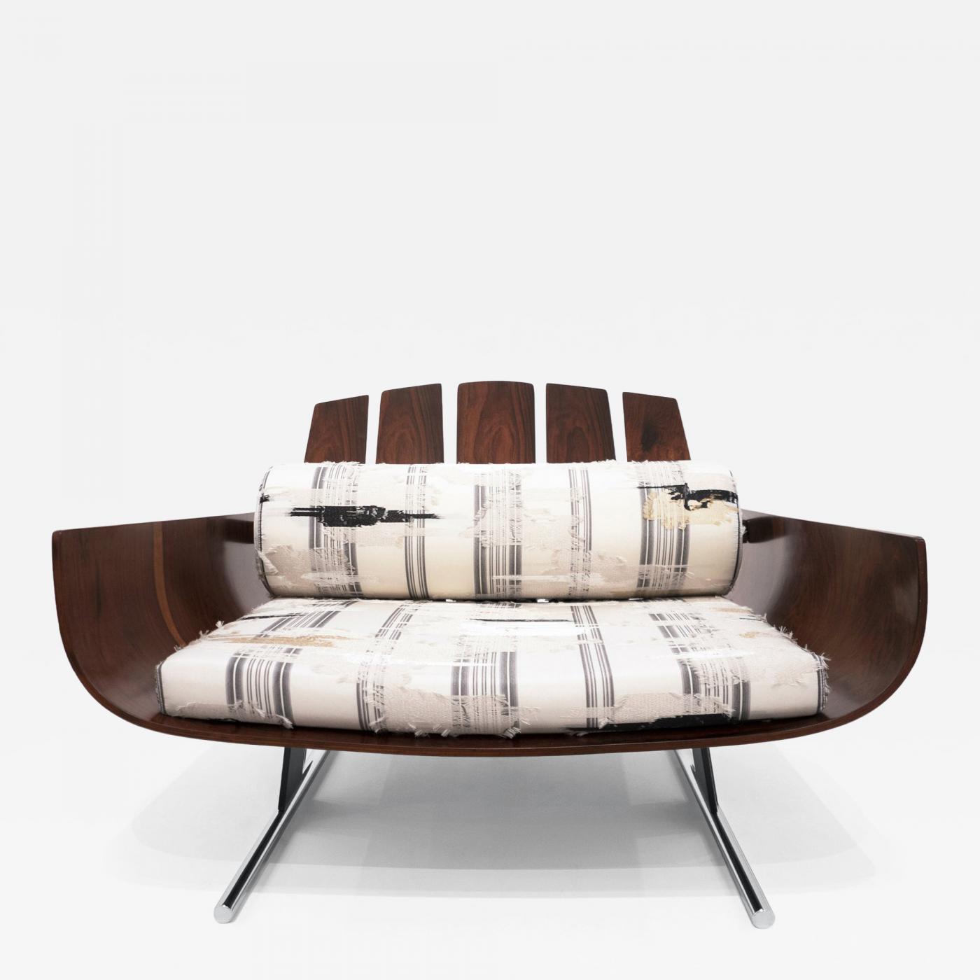 BRAZILIAN ‘JACARANDA’ ROSEWOOD, METAL, DEDAR MILANO UPHOLSTERY