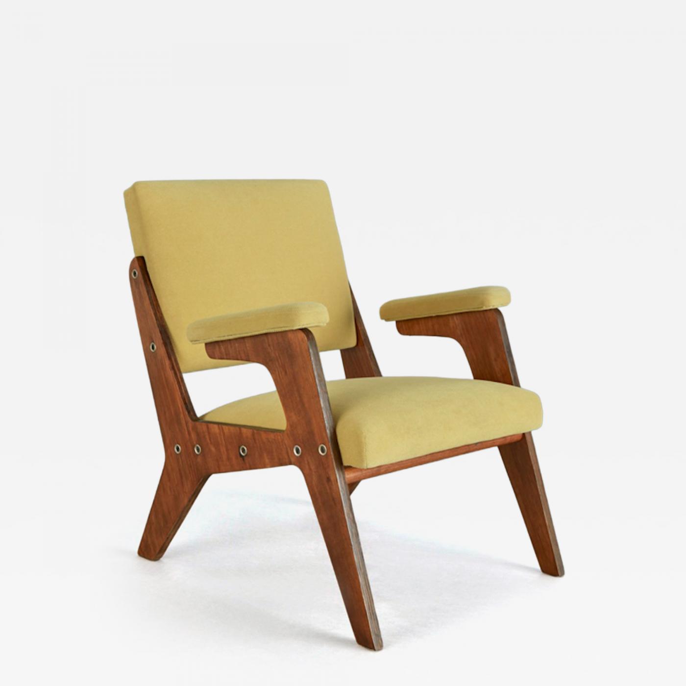 José Zanine Caldas, Lounge Chair, c. 1949, Brazil. Plywood with upholstery, 26 x 24 x 29 in.