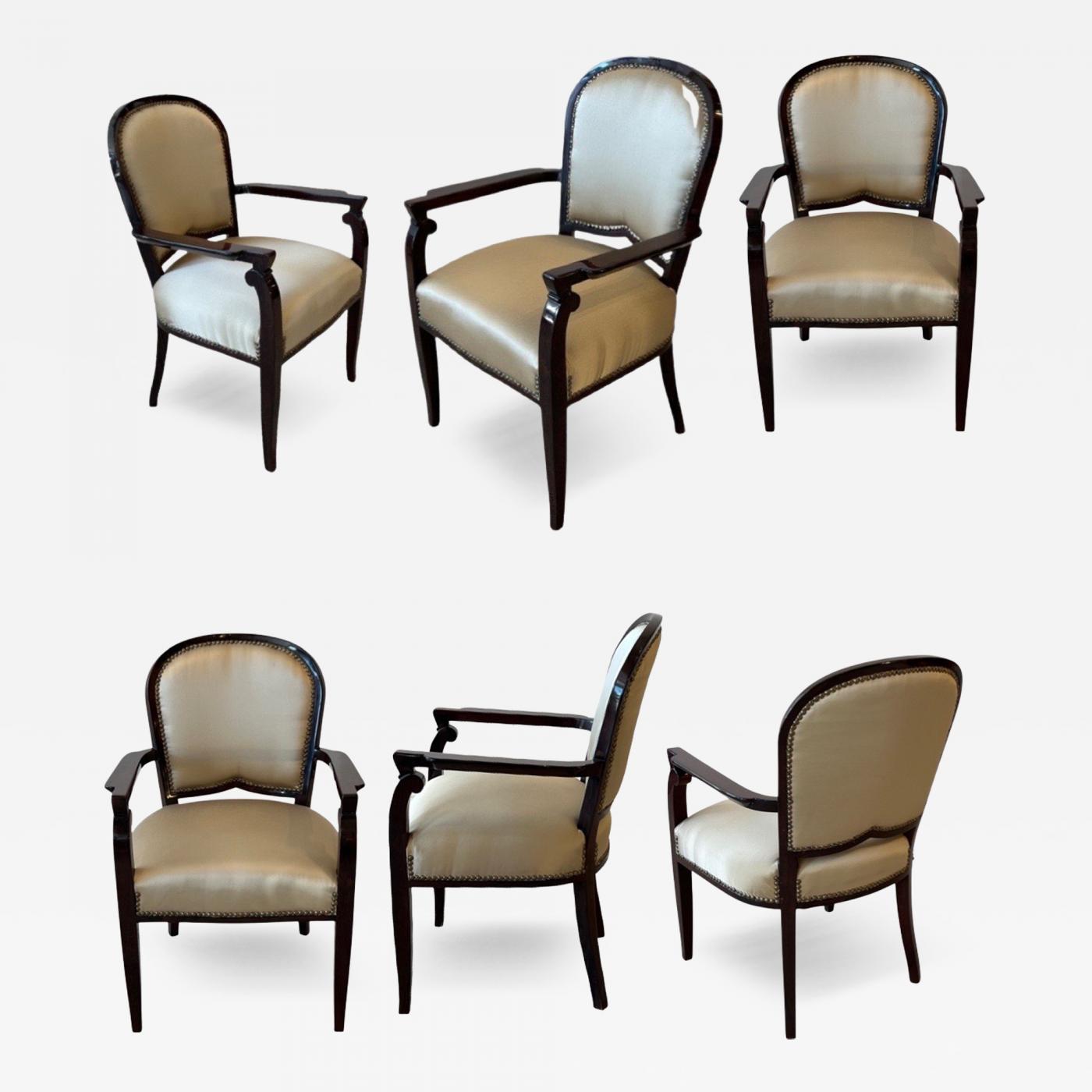 Set of six French Art Deco dining armchairs by Jules Leleu.