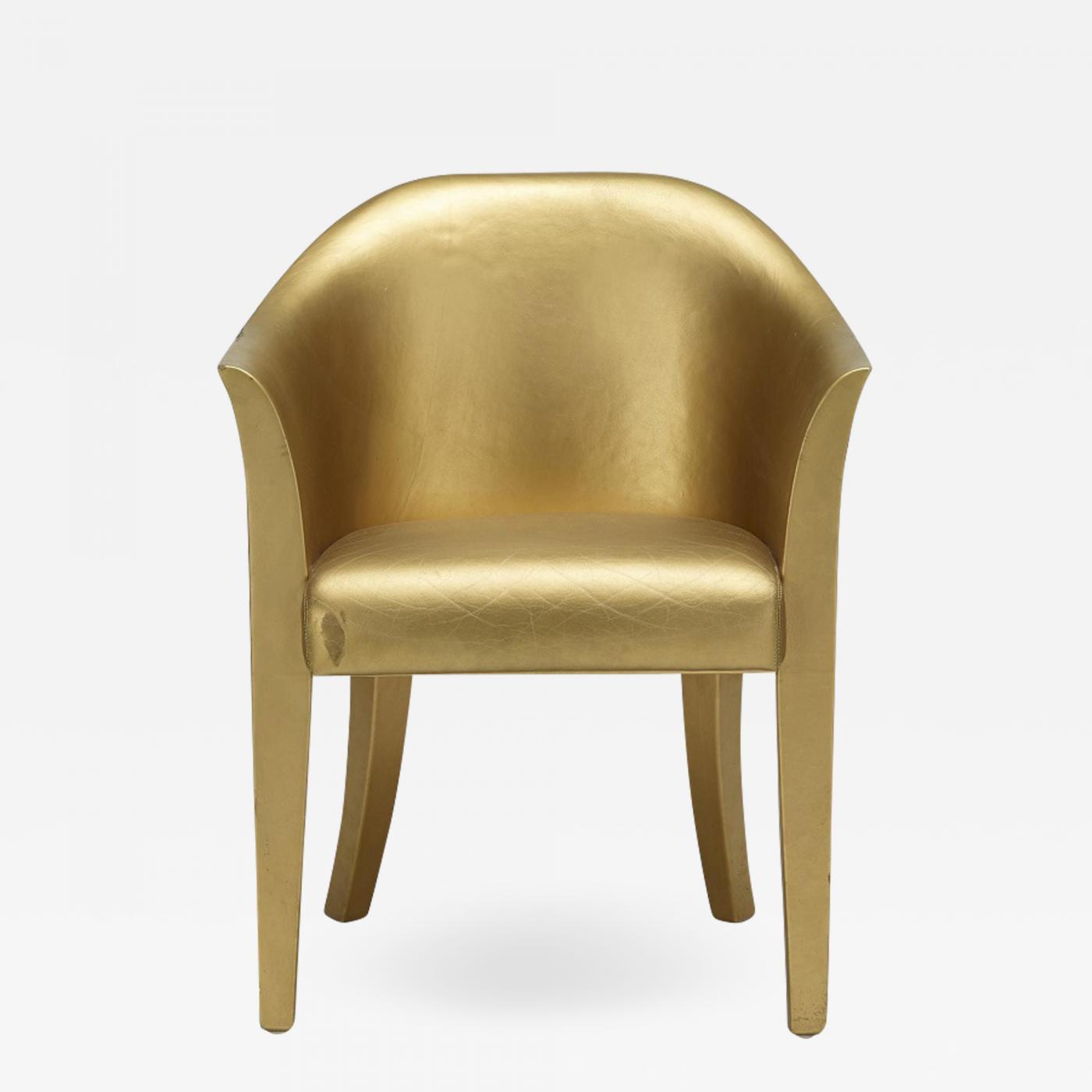 Karl Springer Tulip Armchair. The chair is gilt leather over wood. Signed underneath.
